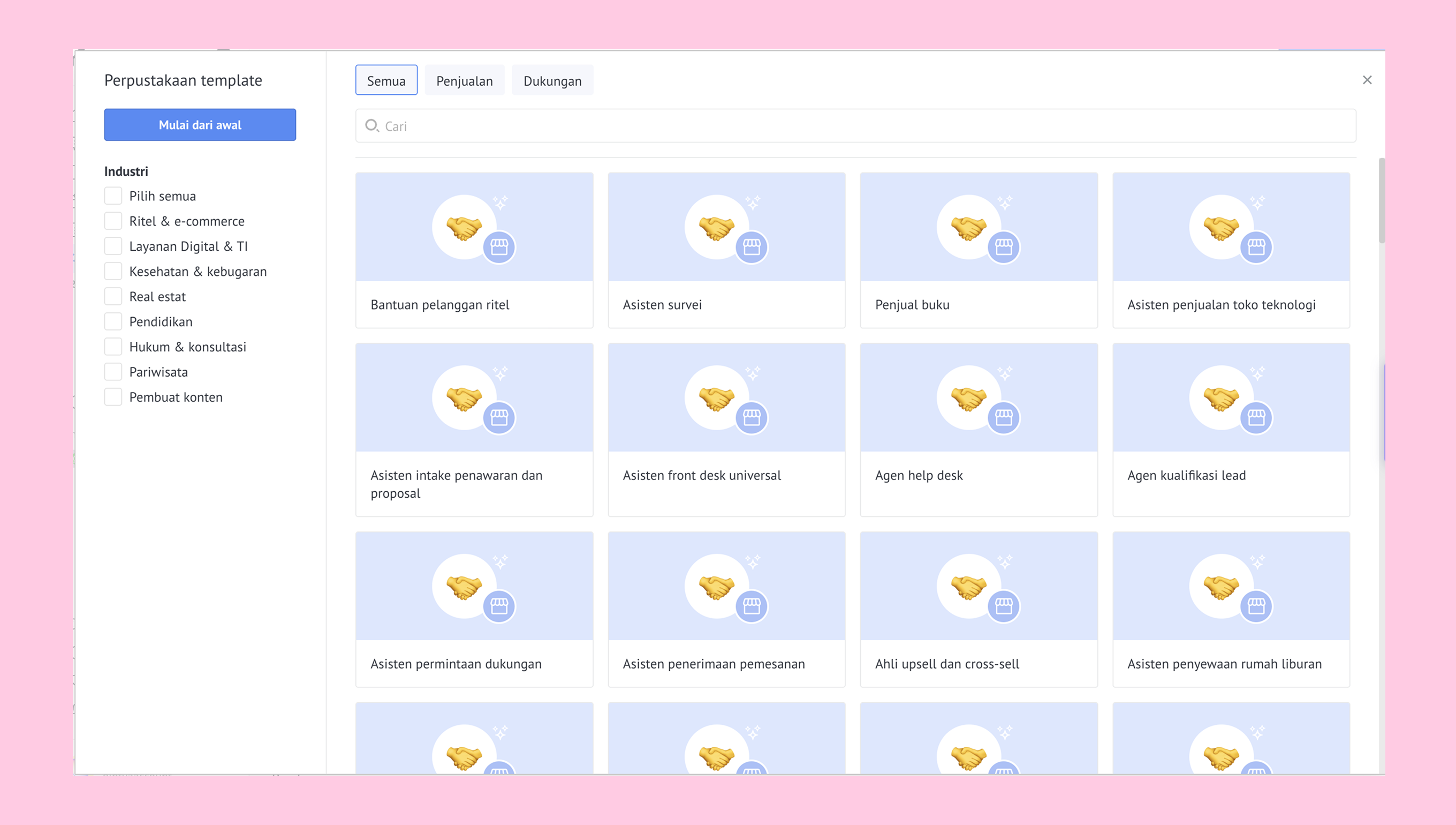 Pilih template lalu klik Gunakan template, atau klik Mulai dari awal untuk membuatnya langkah demi langkah.