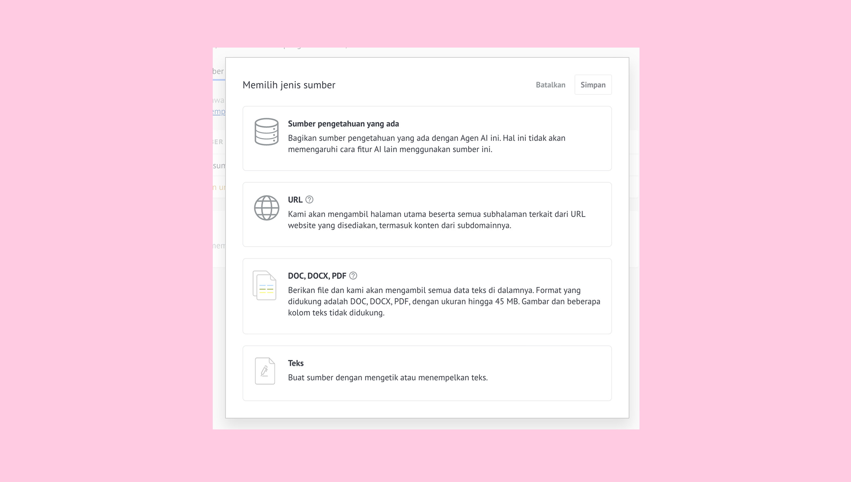 Pilih jenis sumber yang ingin kamu unggah.
