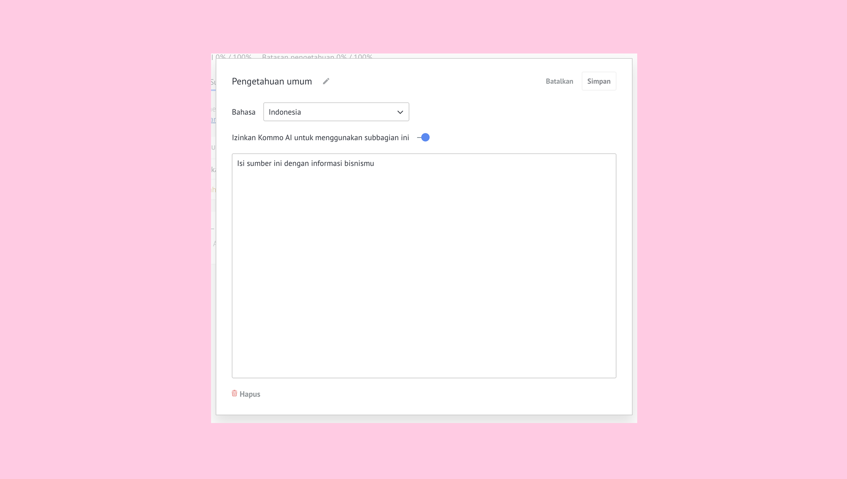 Perbarui pengetahuan secara rutin – esuaikan konten saat produk, harga, atau kebijakan berubah.