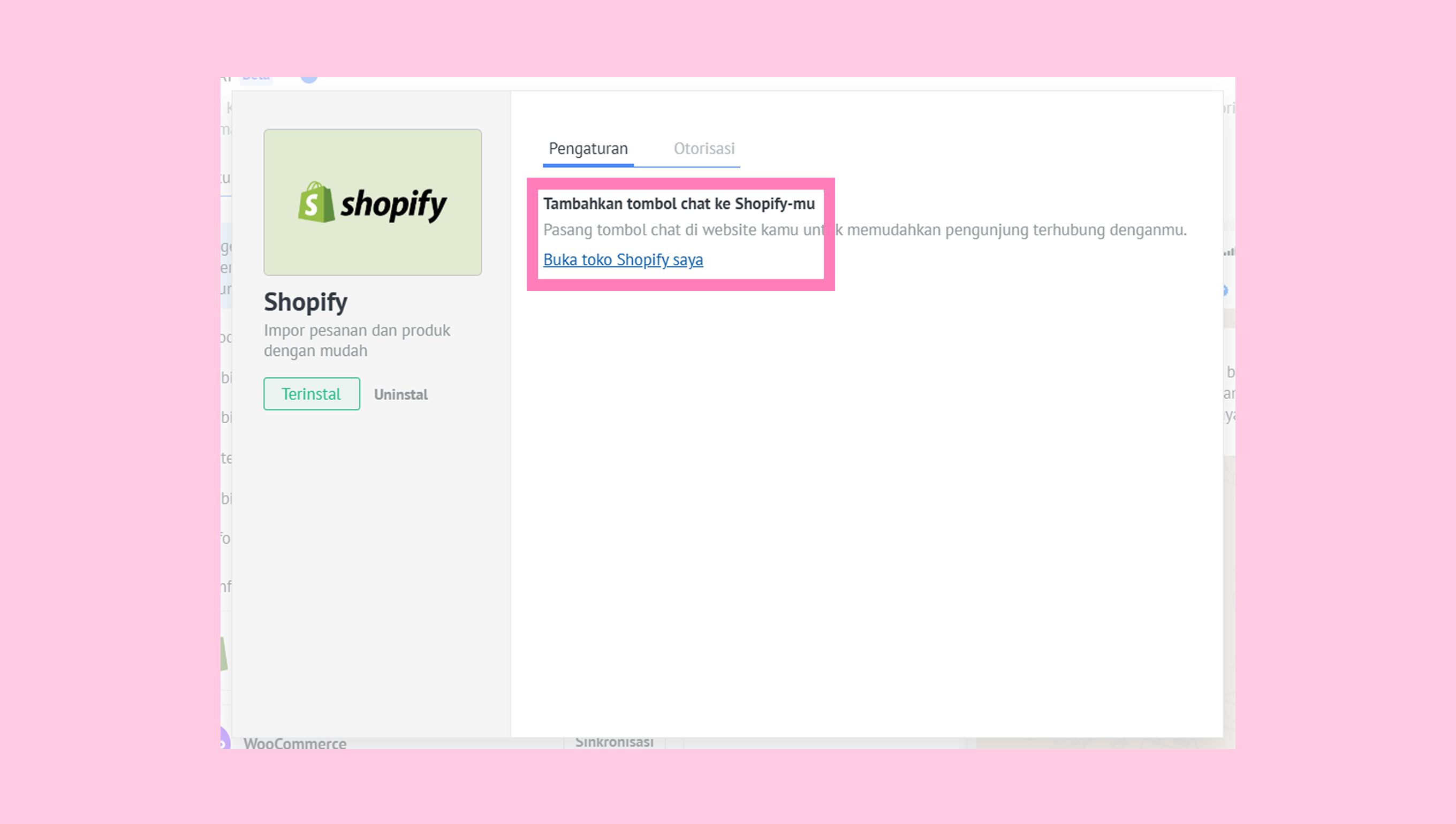 Ini adalah contoh menyiapkan integrasi menggunakan Shopify: