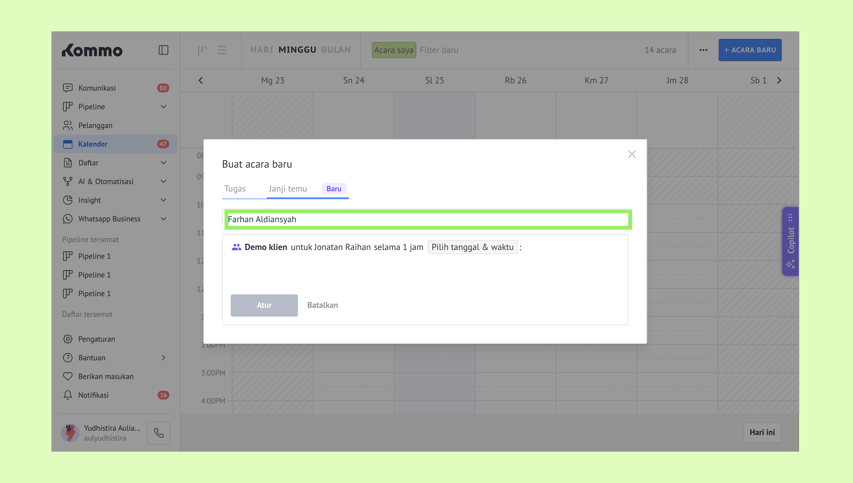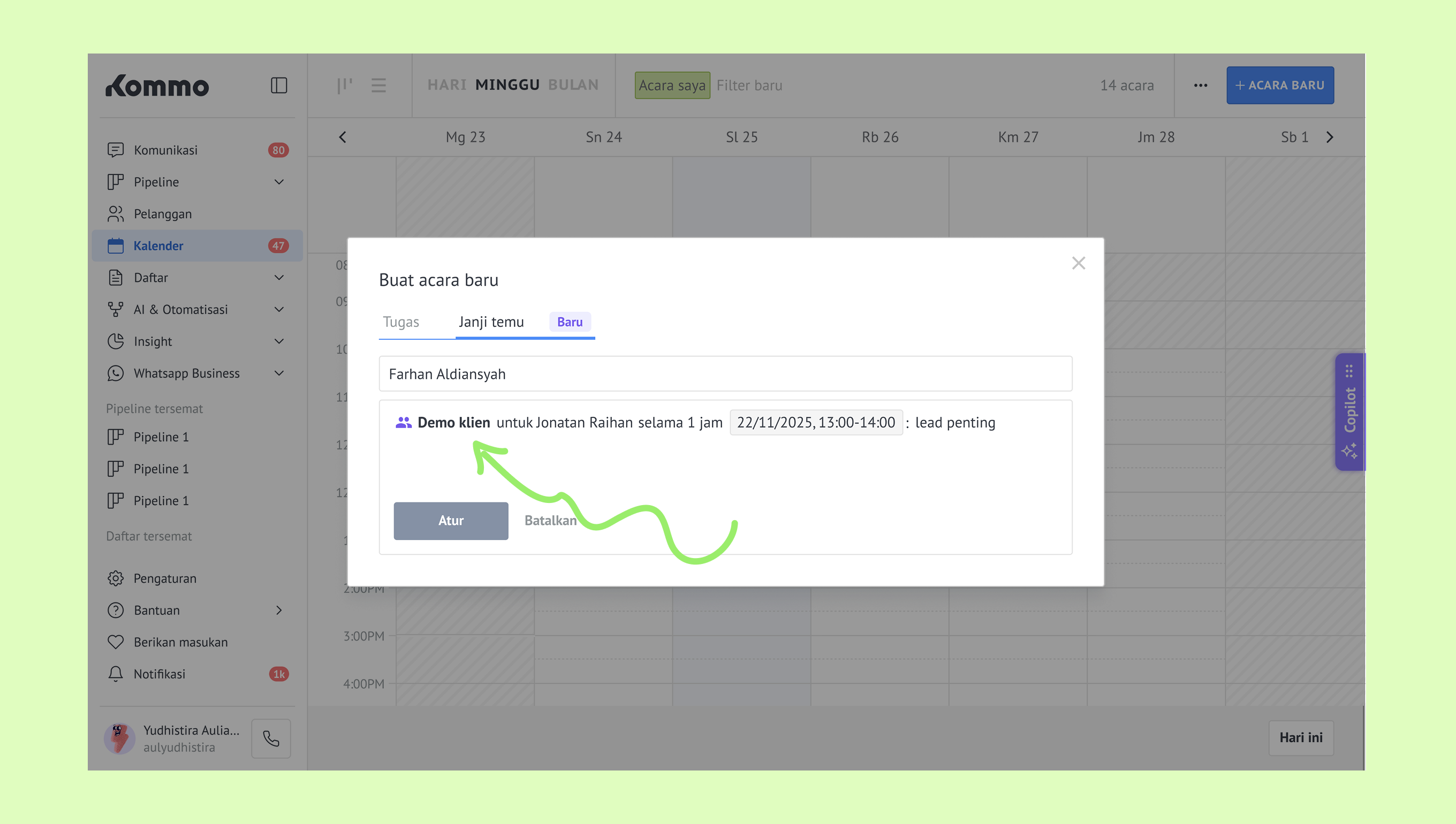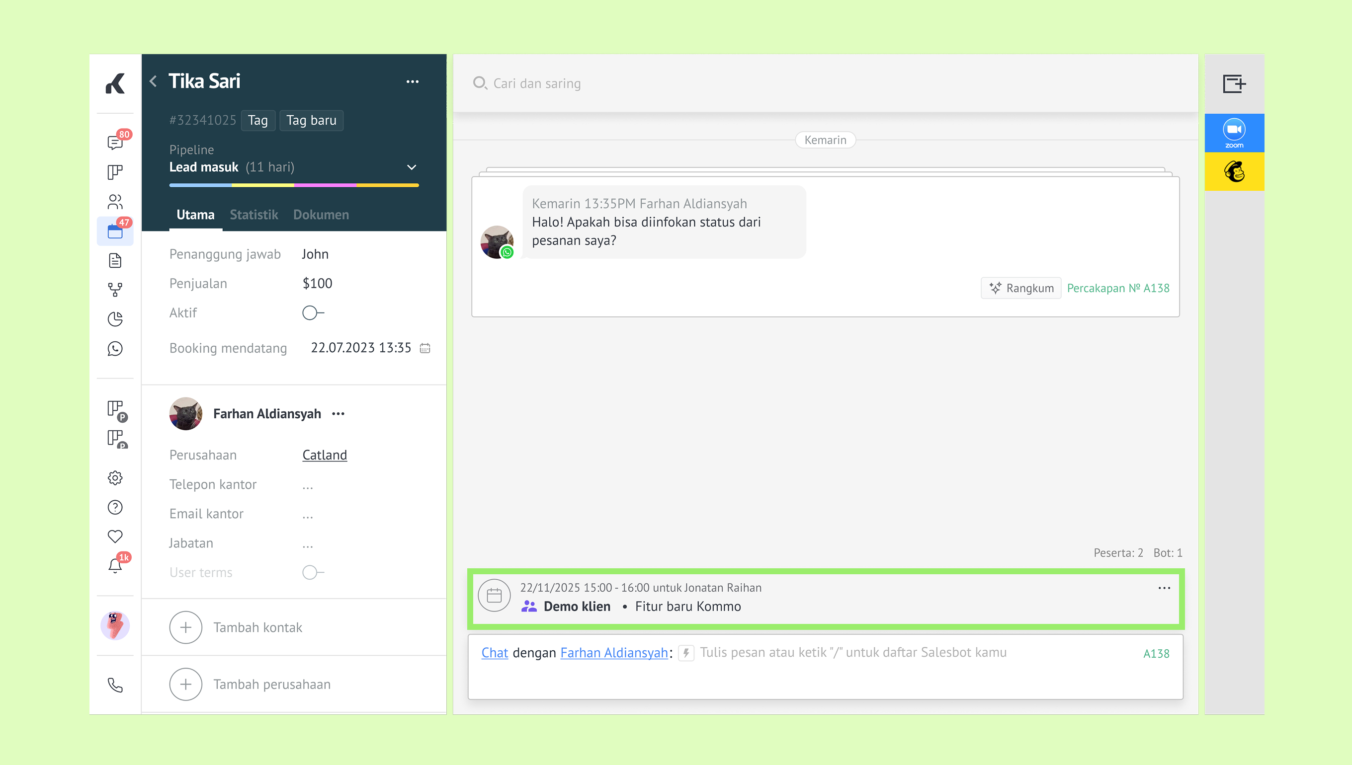 Mengelola janji temu di Kommo
