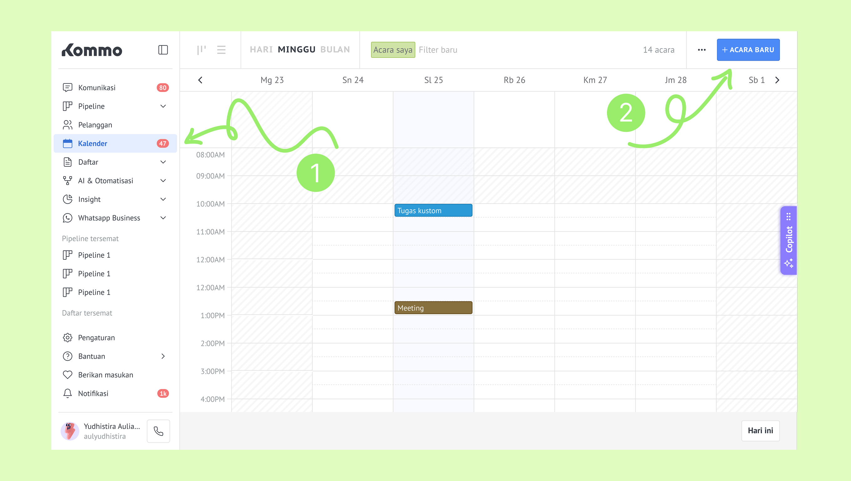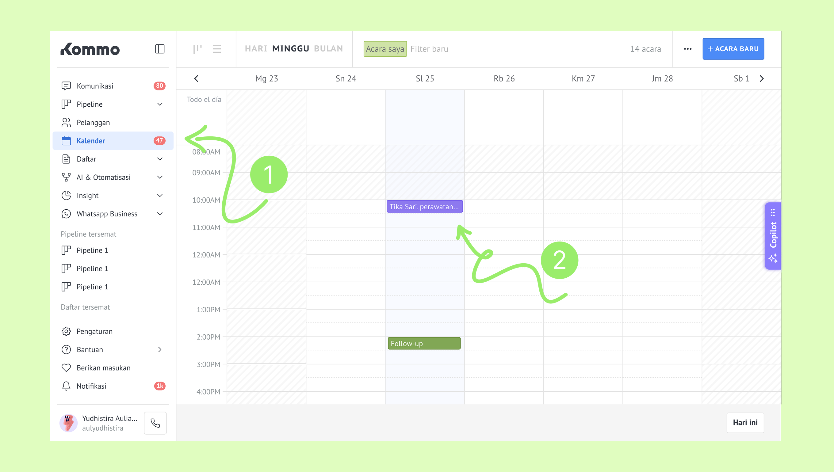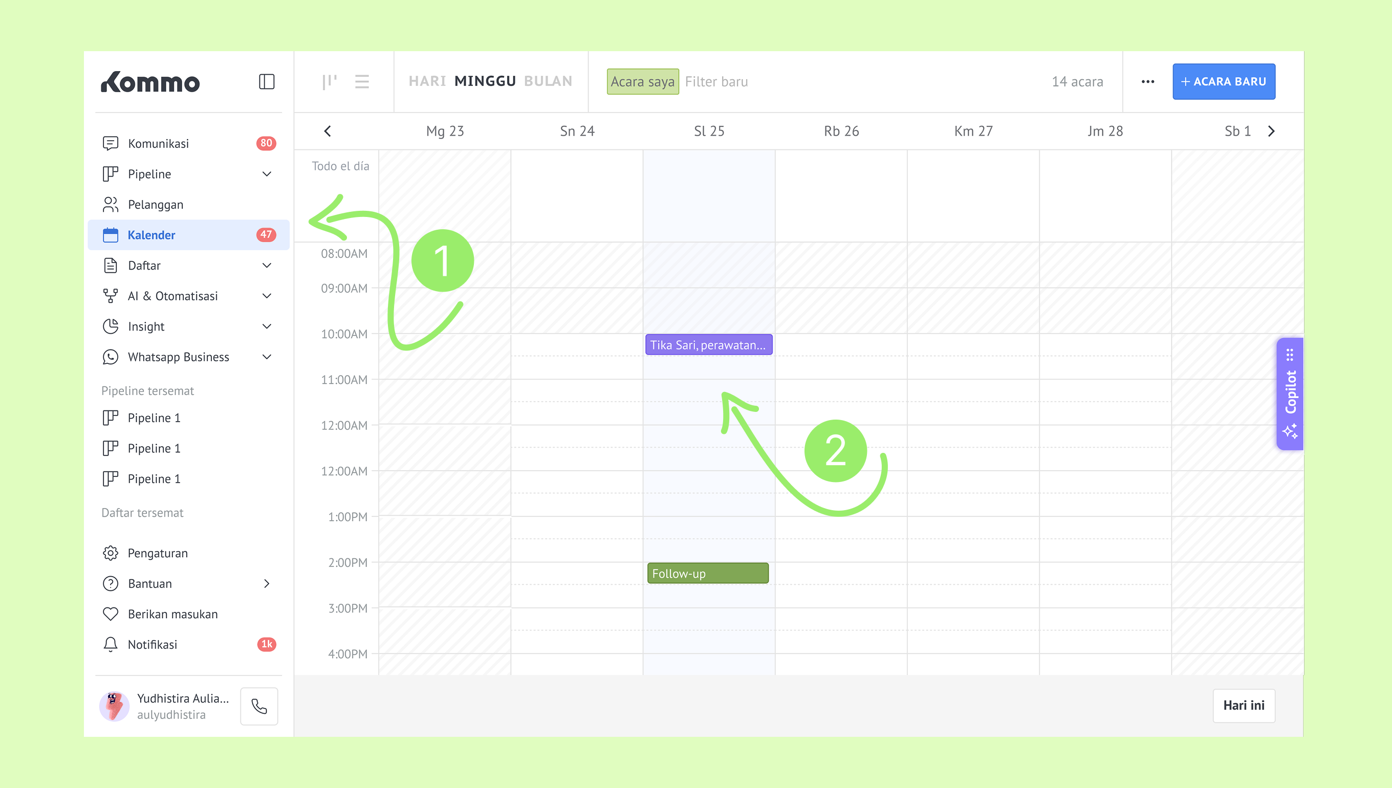 Mengelola janji temu di Kommo