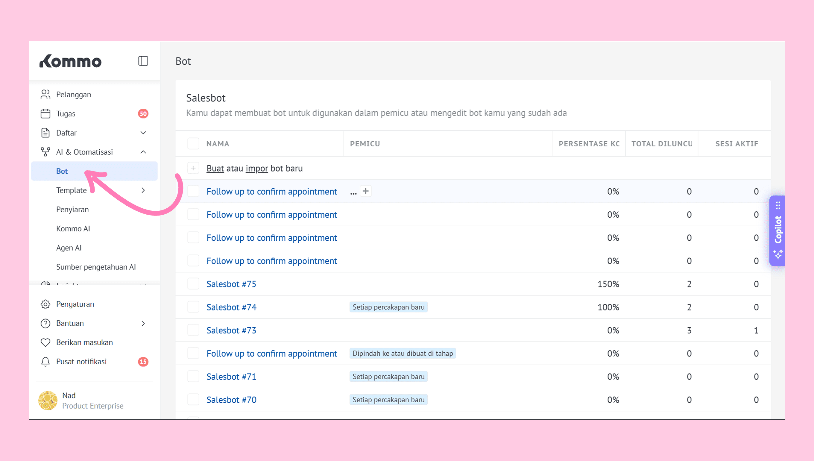 Pelajari selengkapnya di artikel Cara membuat Salesbot.