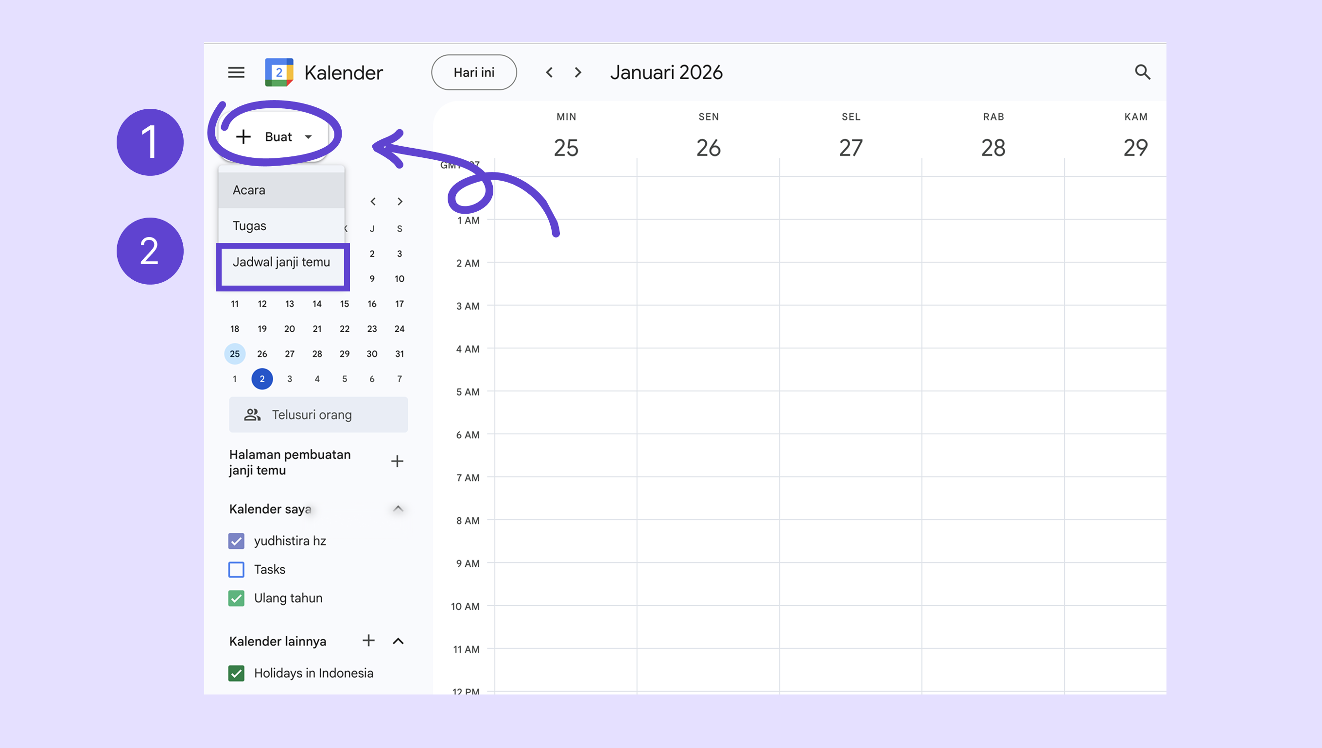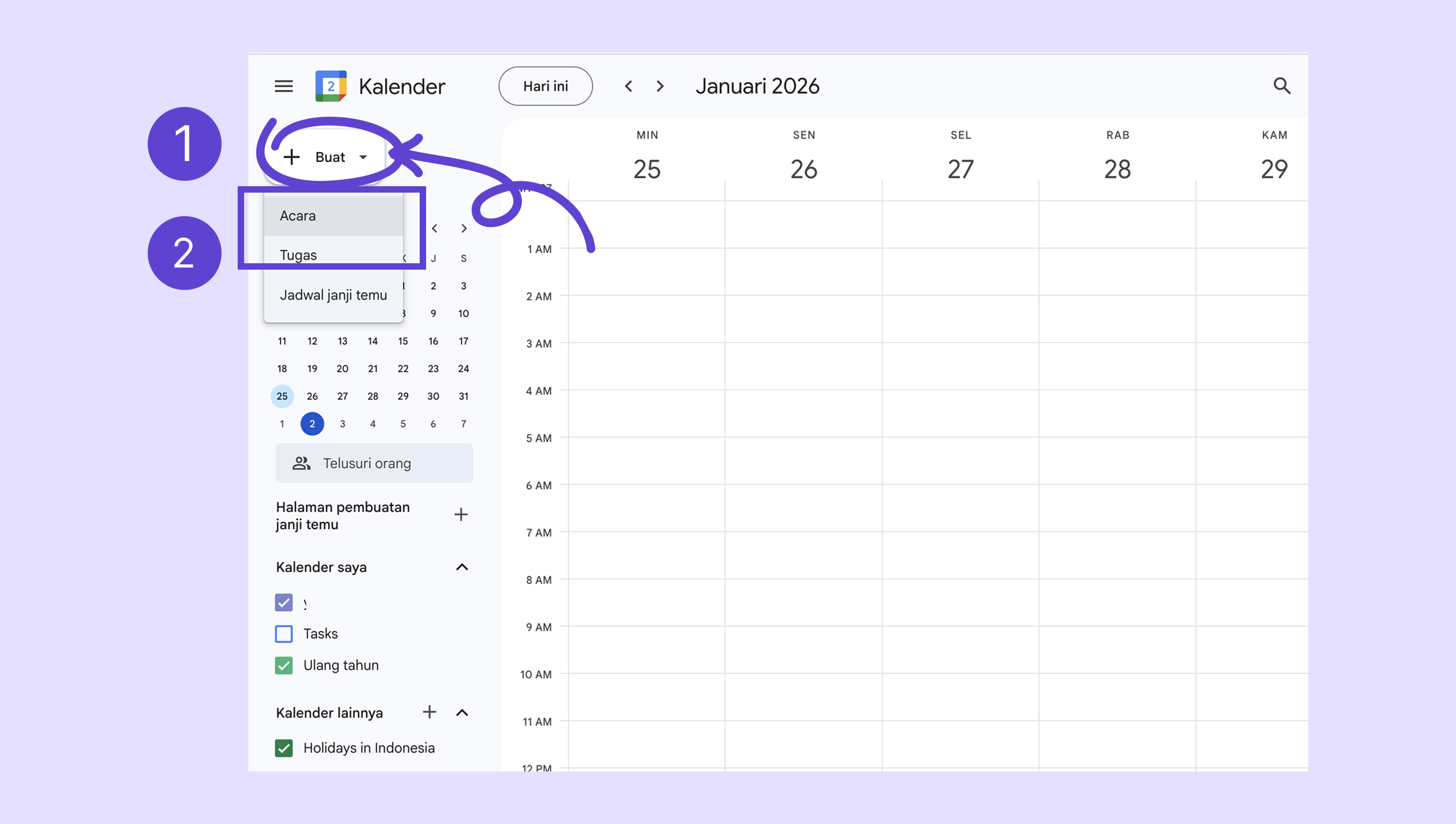 Buka Google Kalender → klik Buat.