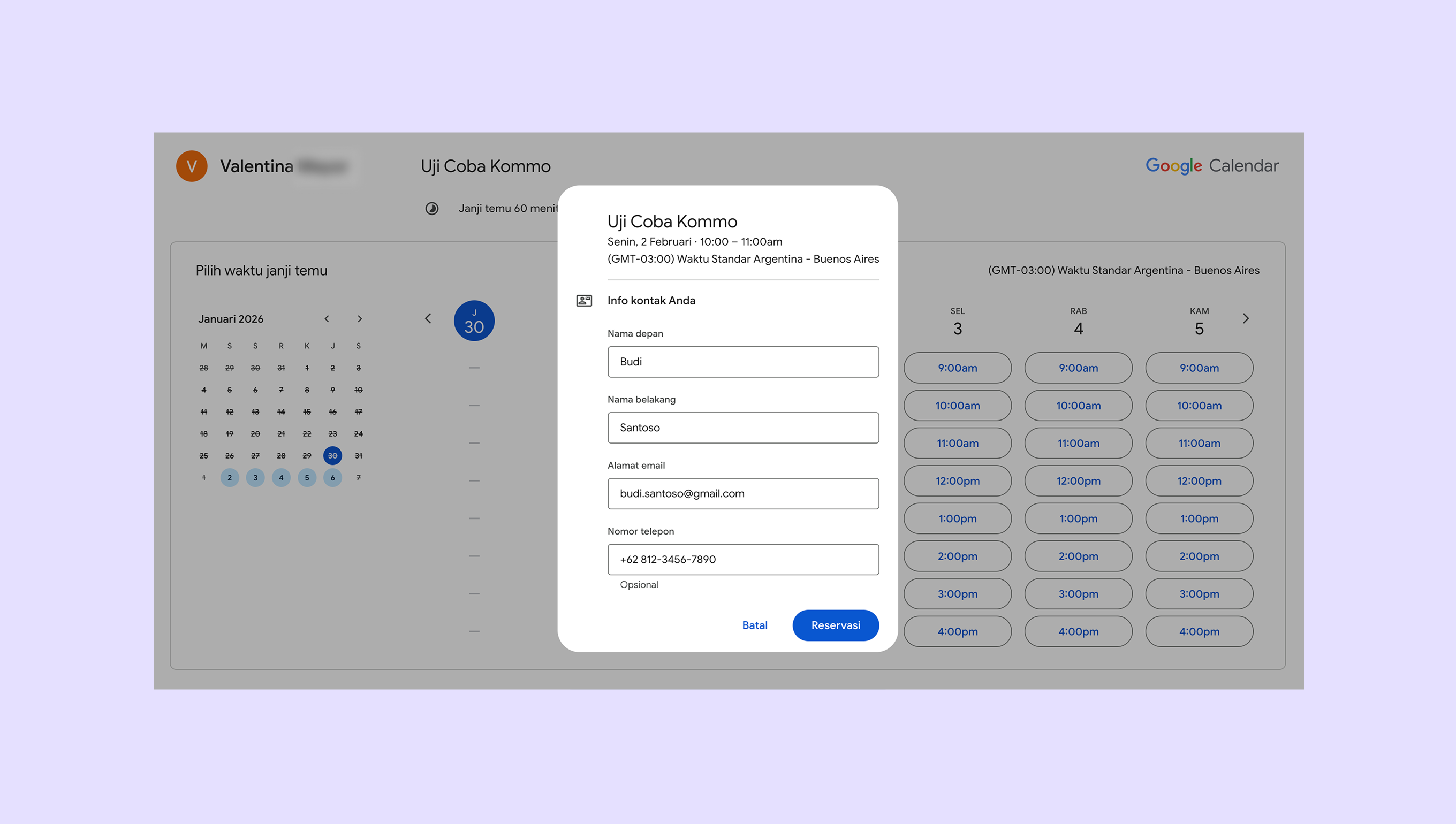 - Pilih slot waktu dan lakukan booking percobaan (seolah kamu adalah lead).