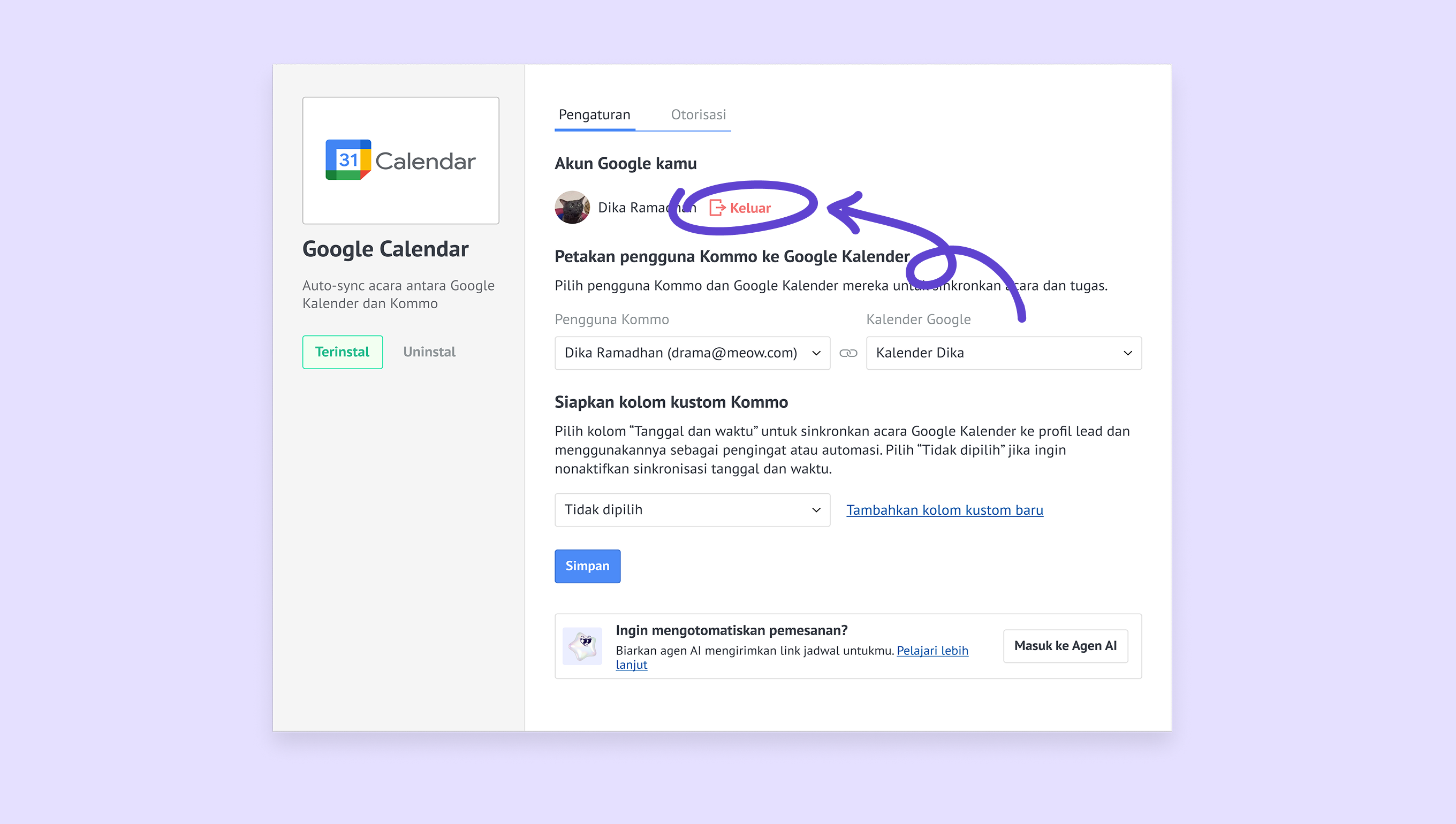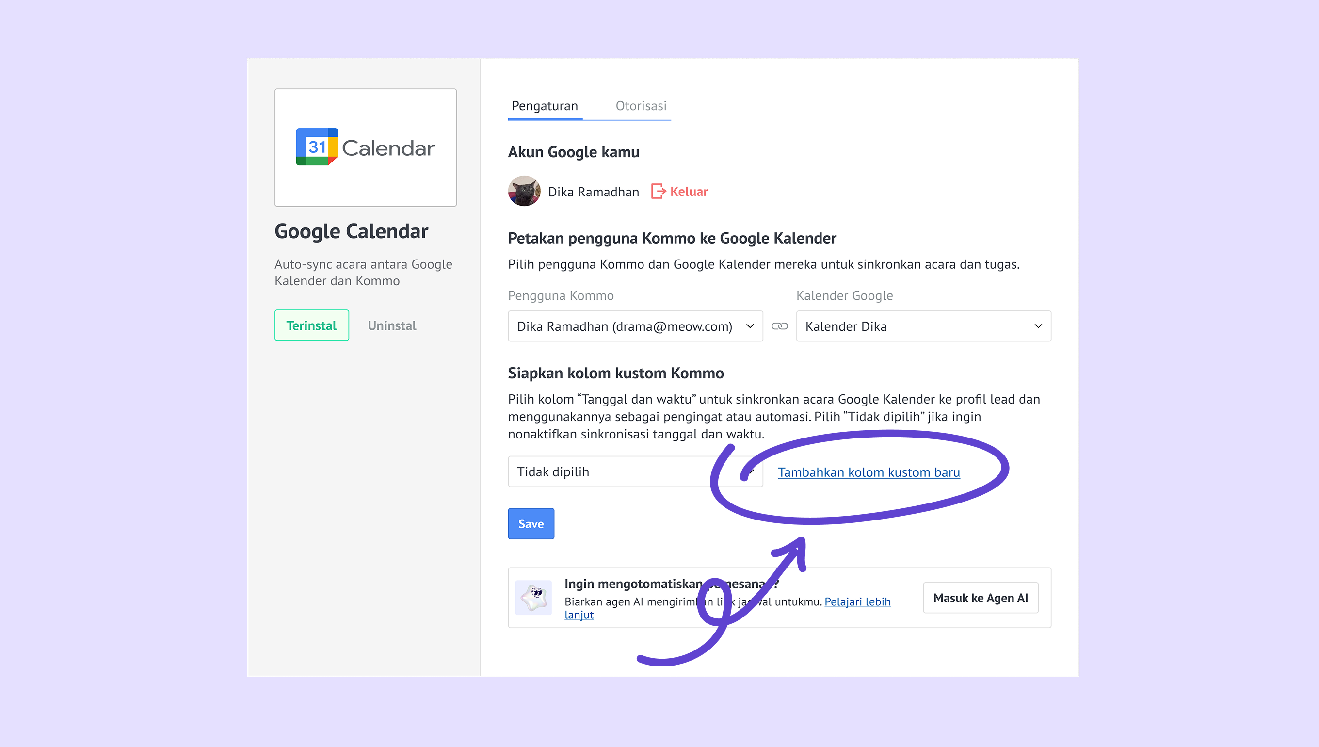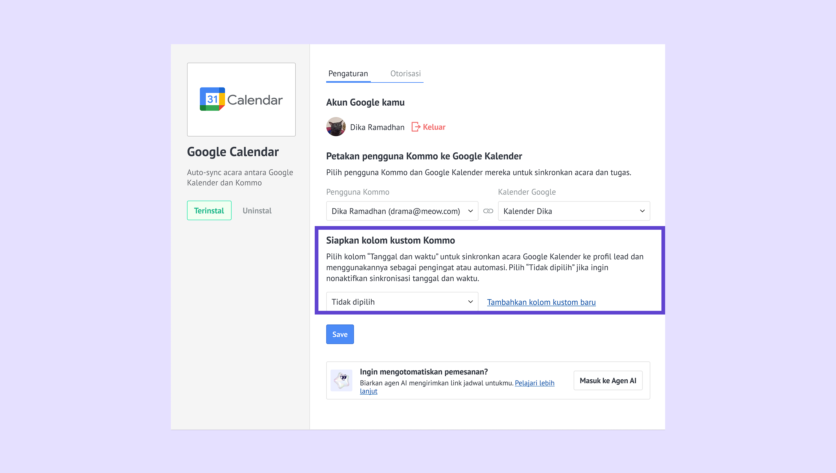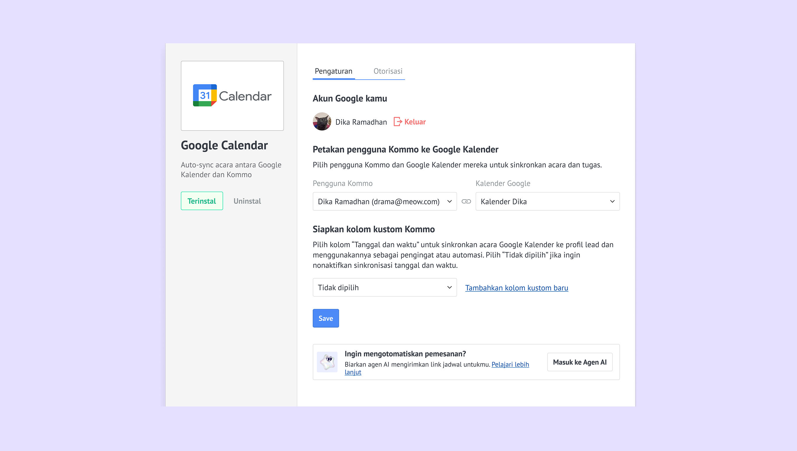 Hubungkan Google Kalender ke Kommo