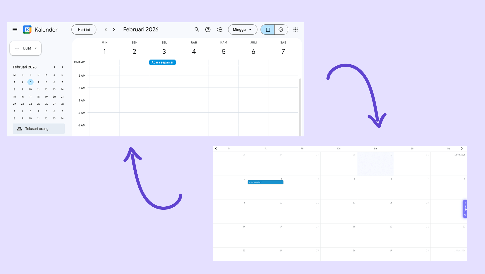 Setiap perubahan – seperti menjadwalkan ulang atau hapus acara – diperbarui di kedua kalender.
