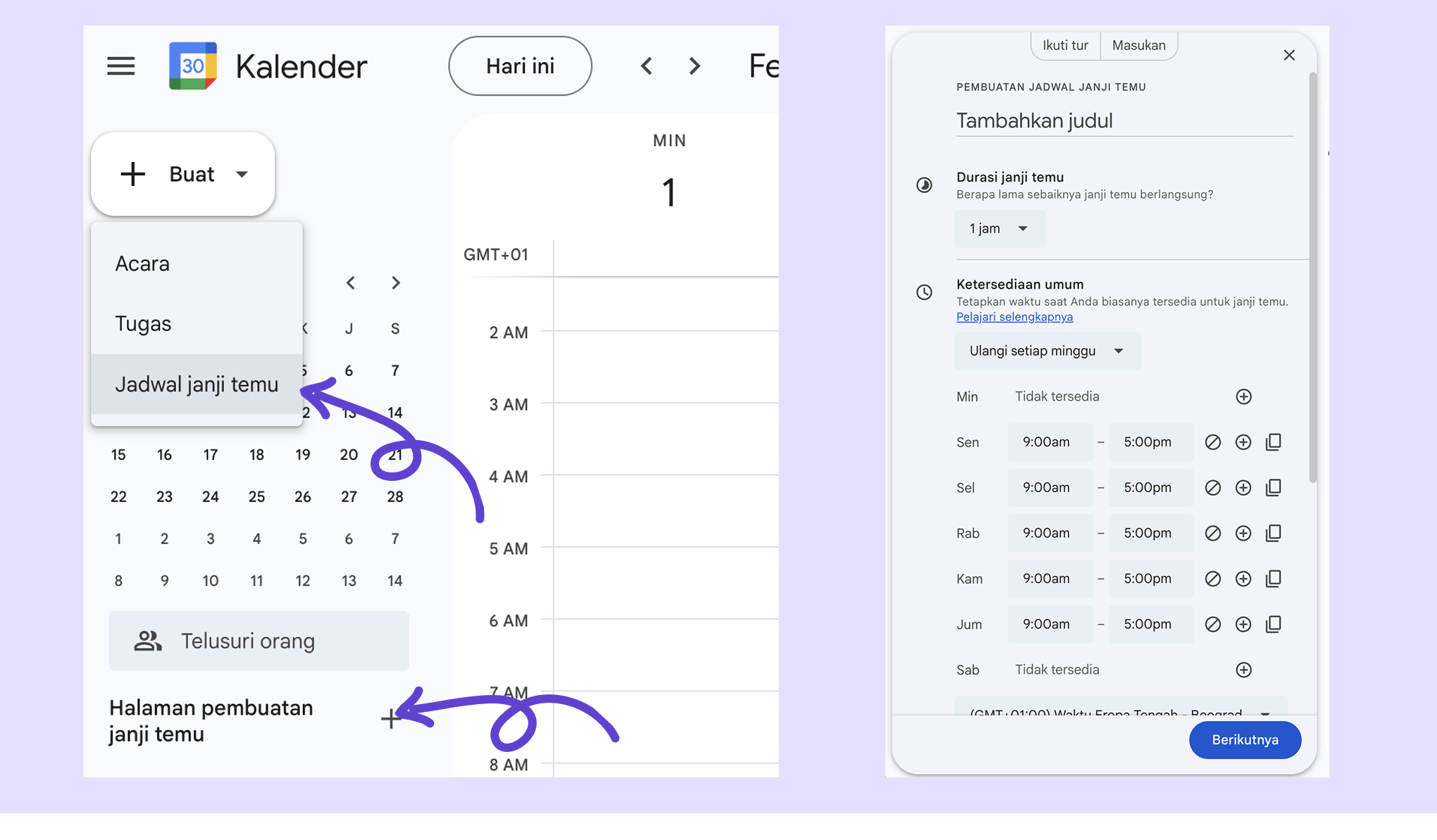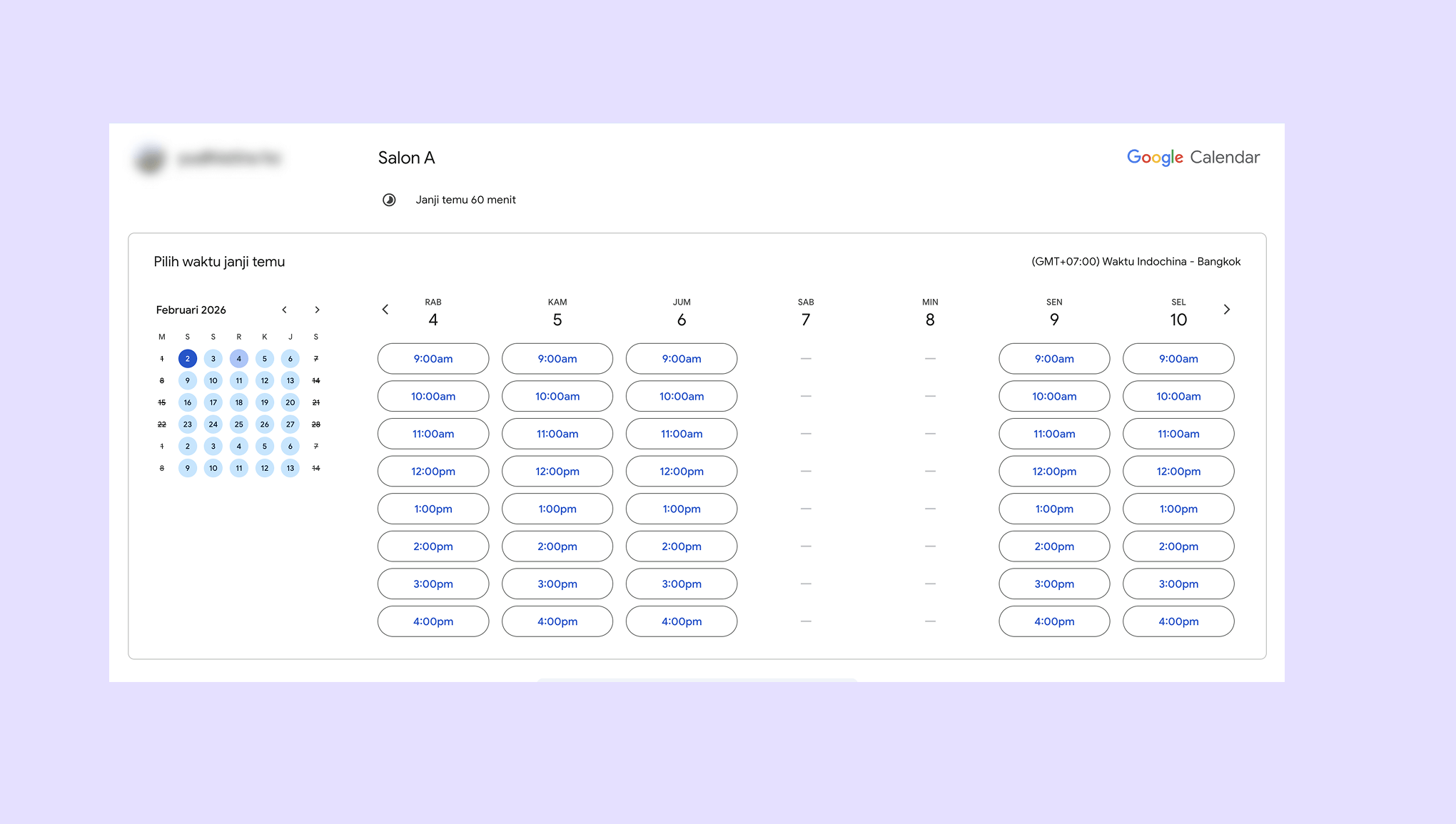 Mereka bisa melihat jam tersedia kamu dan memilih tanggal & waktu yang cocok.