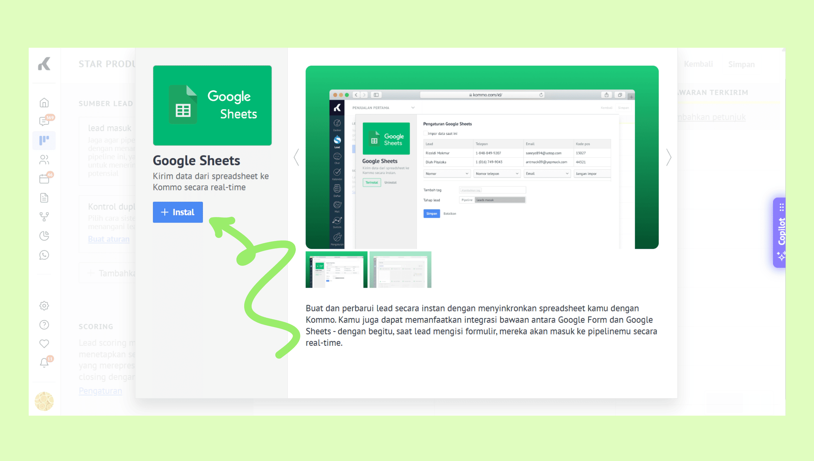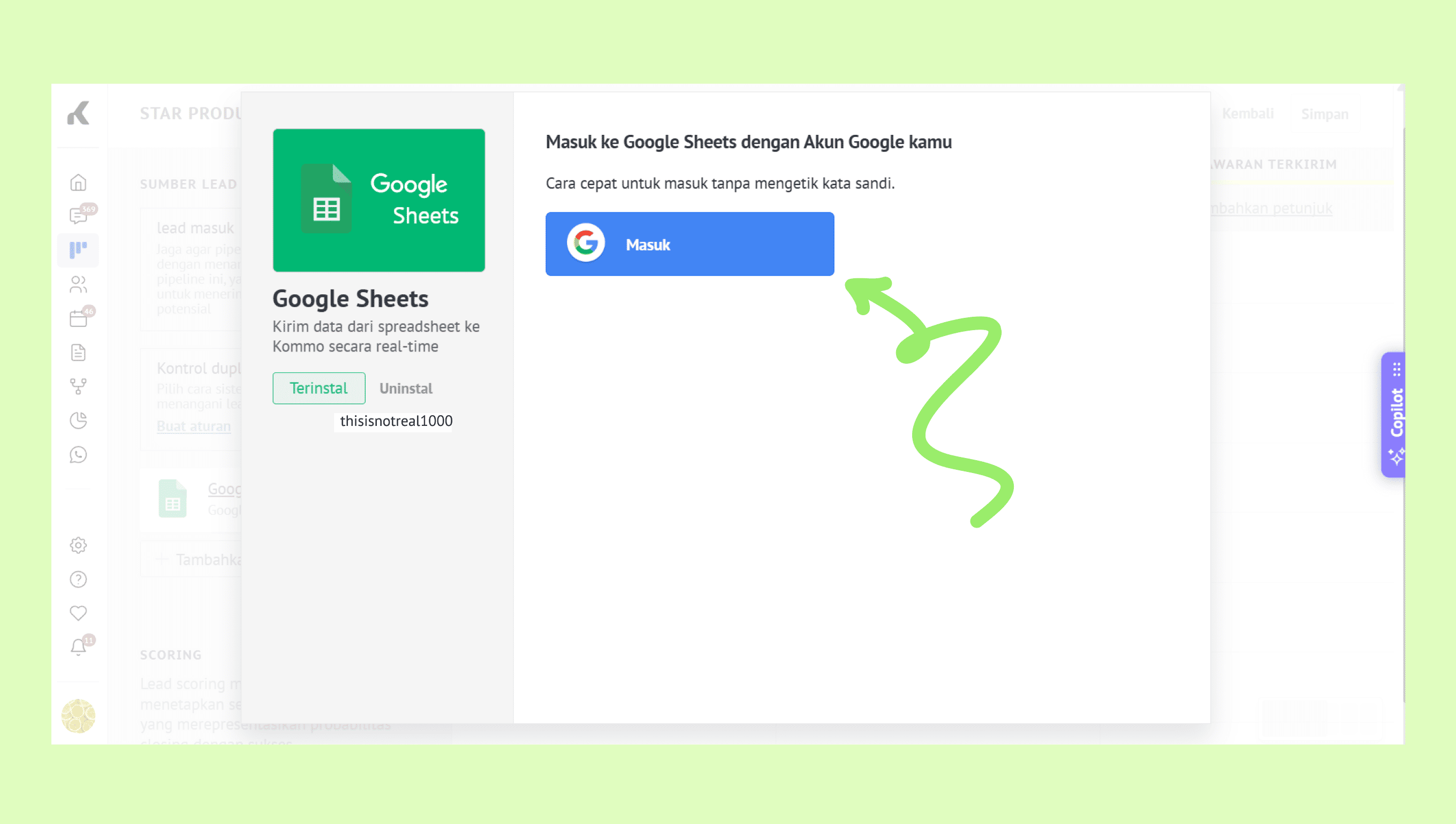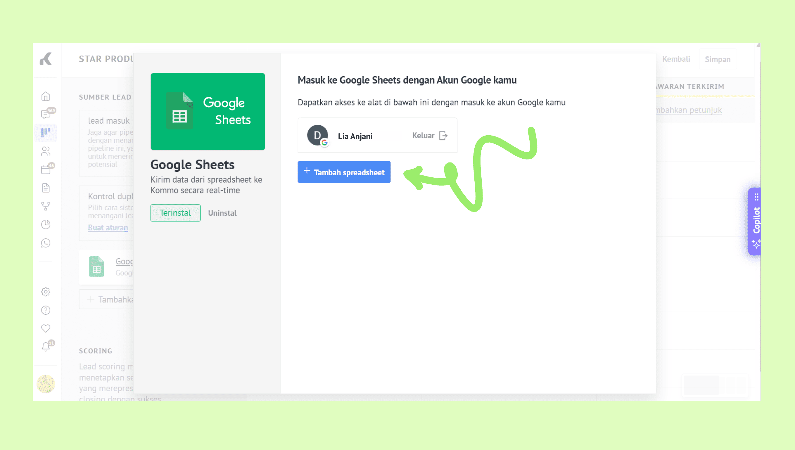 Hubungkan Google Sheets ke Kommo