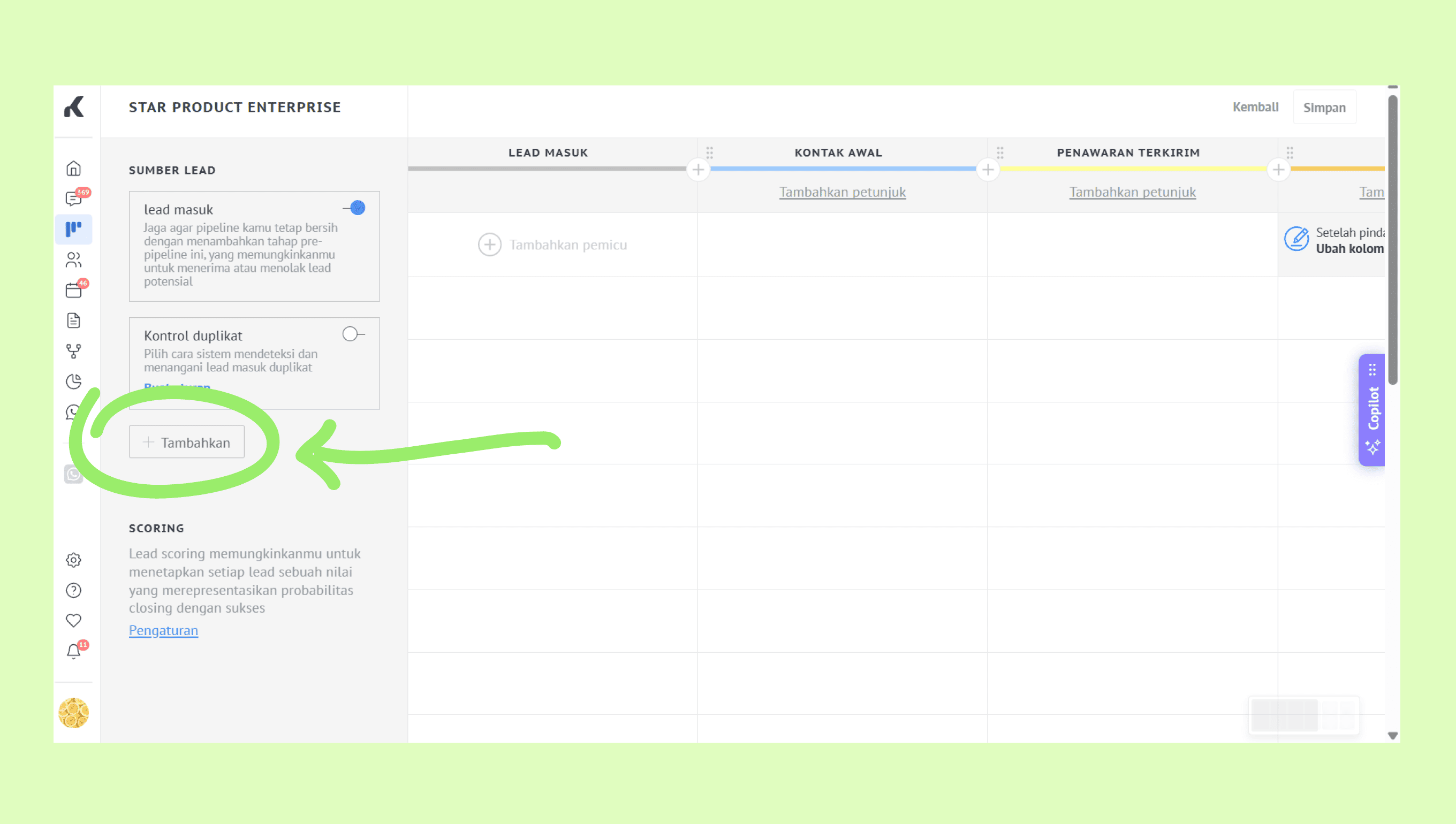 Penanggung jawab: Tetapkan anggota tim yang bertanggung jawab atas lead baru agar dapat segera ditindaklanjuti.
