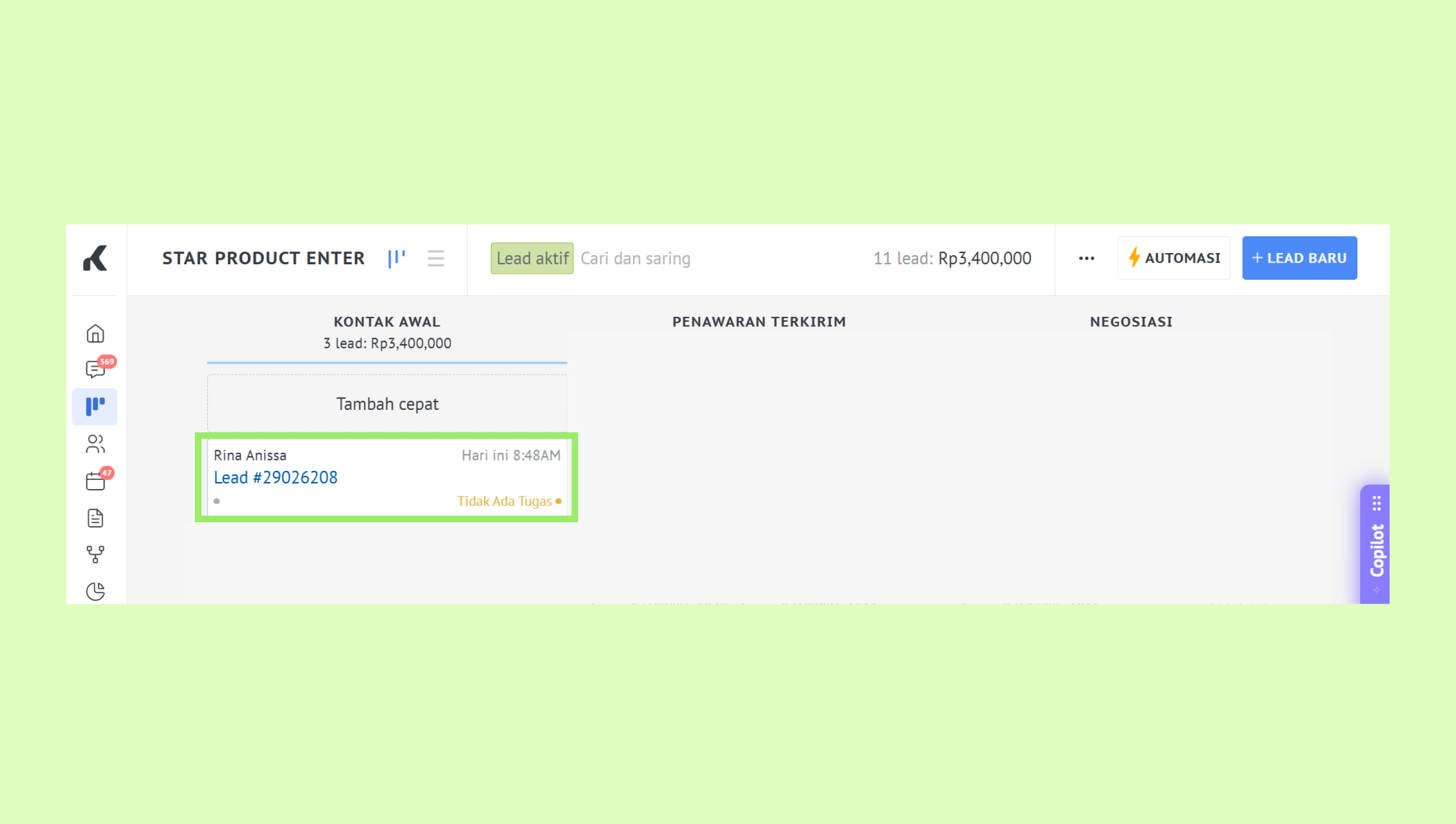 - Klien yang merespons di Google Form menjadi lead baru di Kommo: