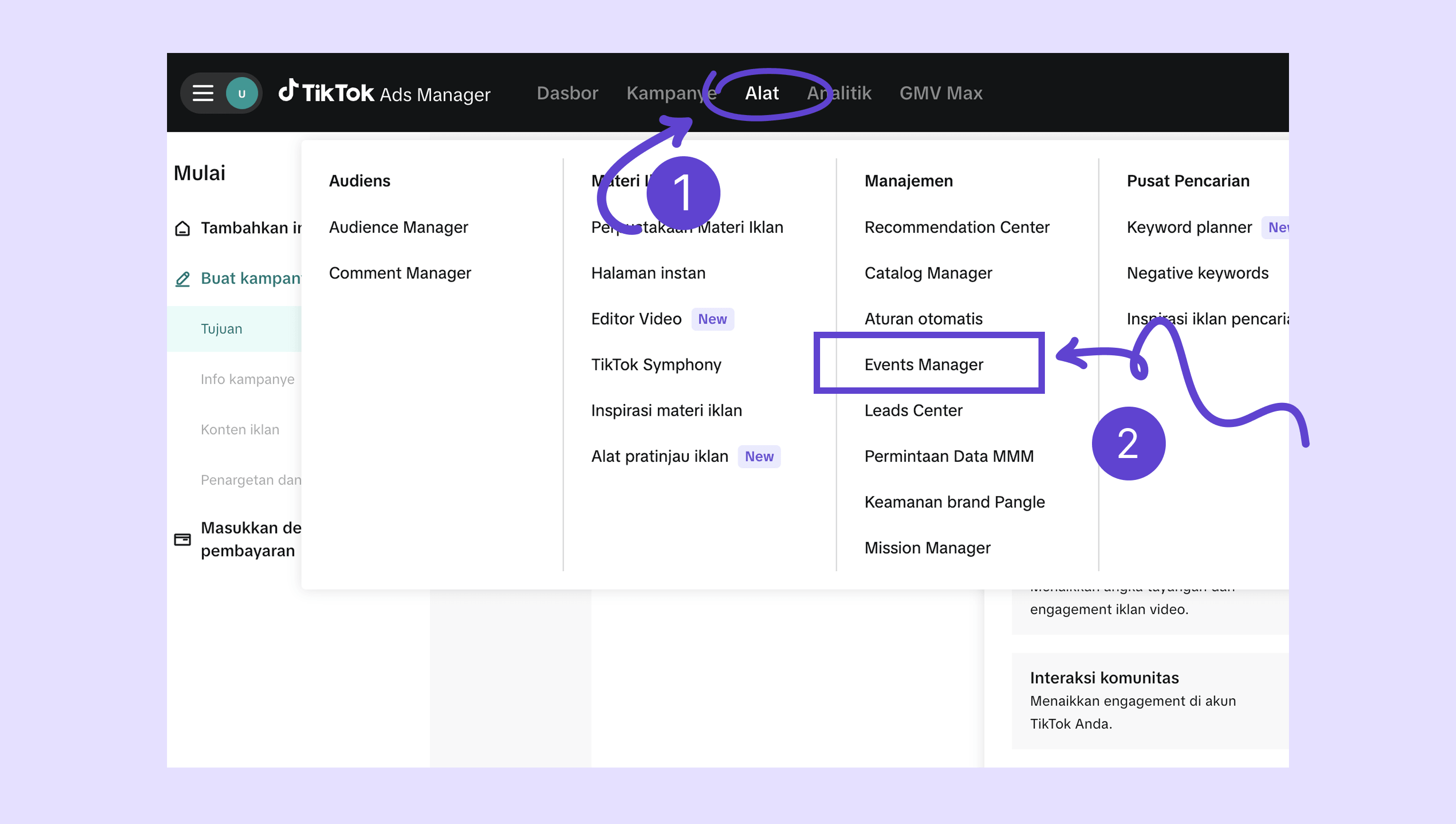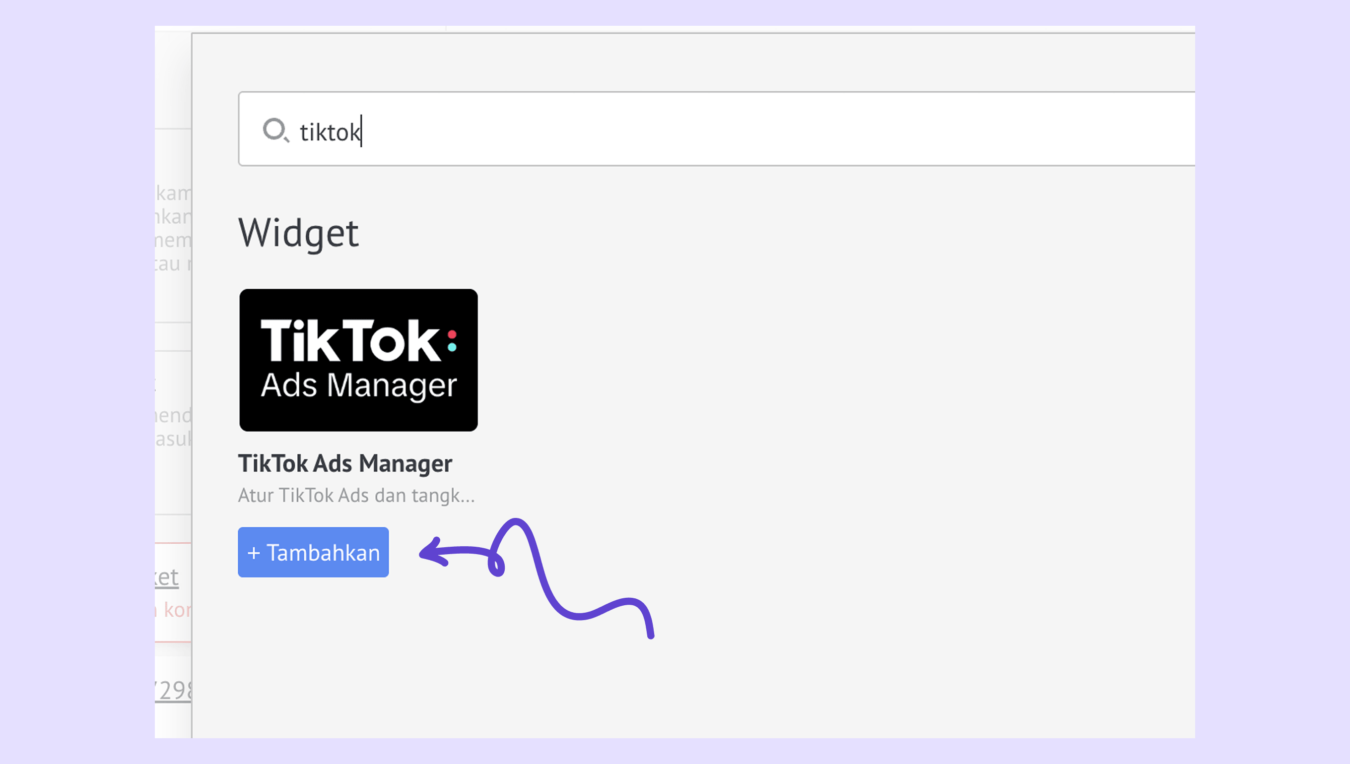 Cari TikTok Ads Manager → klik + Tambahkan .