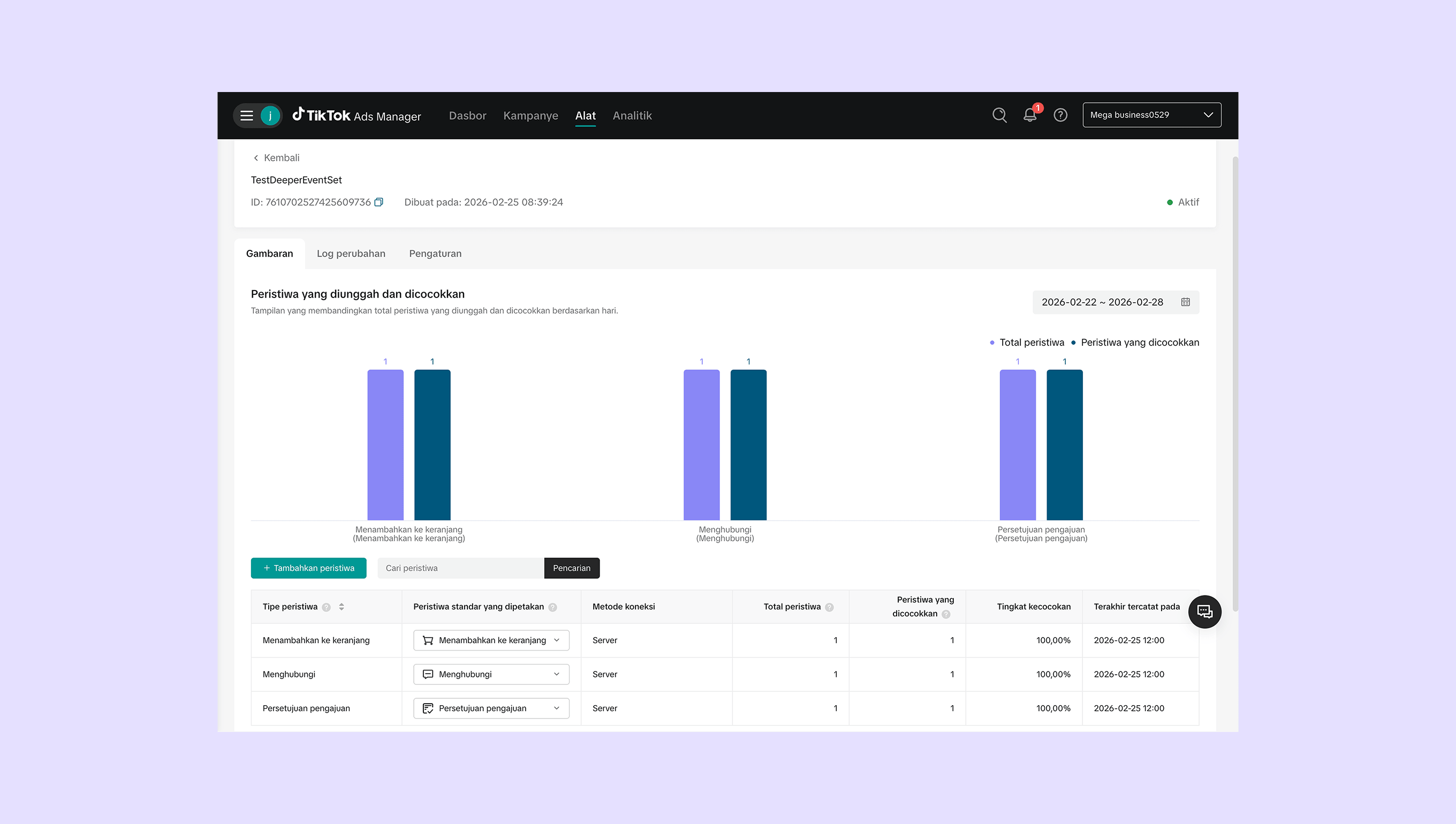 Pilih Set event yang sebelumnya dibuat di akun TikTok Ads kamu.
