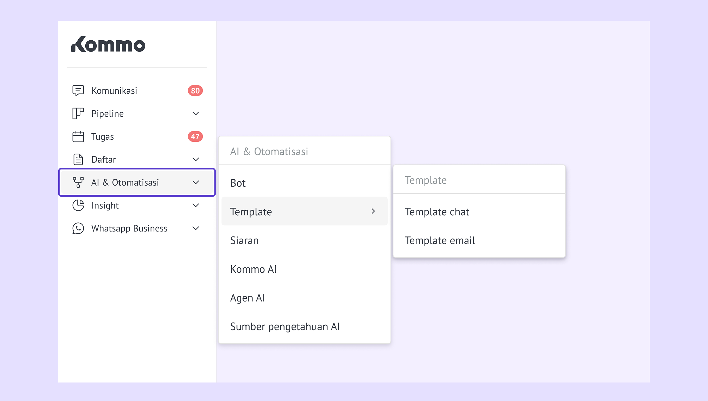 Kommo AI – dapatkan bantuan AI untuk menulis, membalas, dan mengelola percakapan klien. -