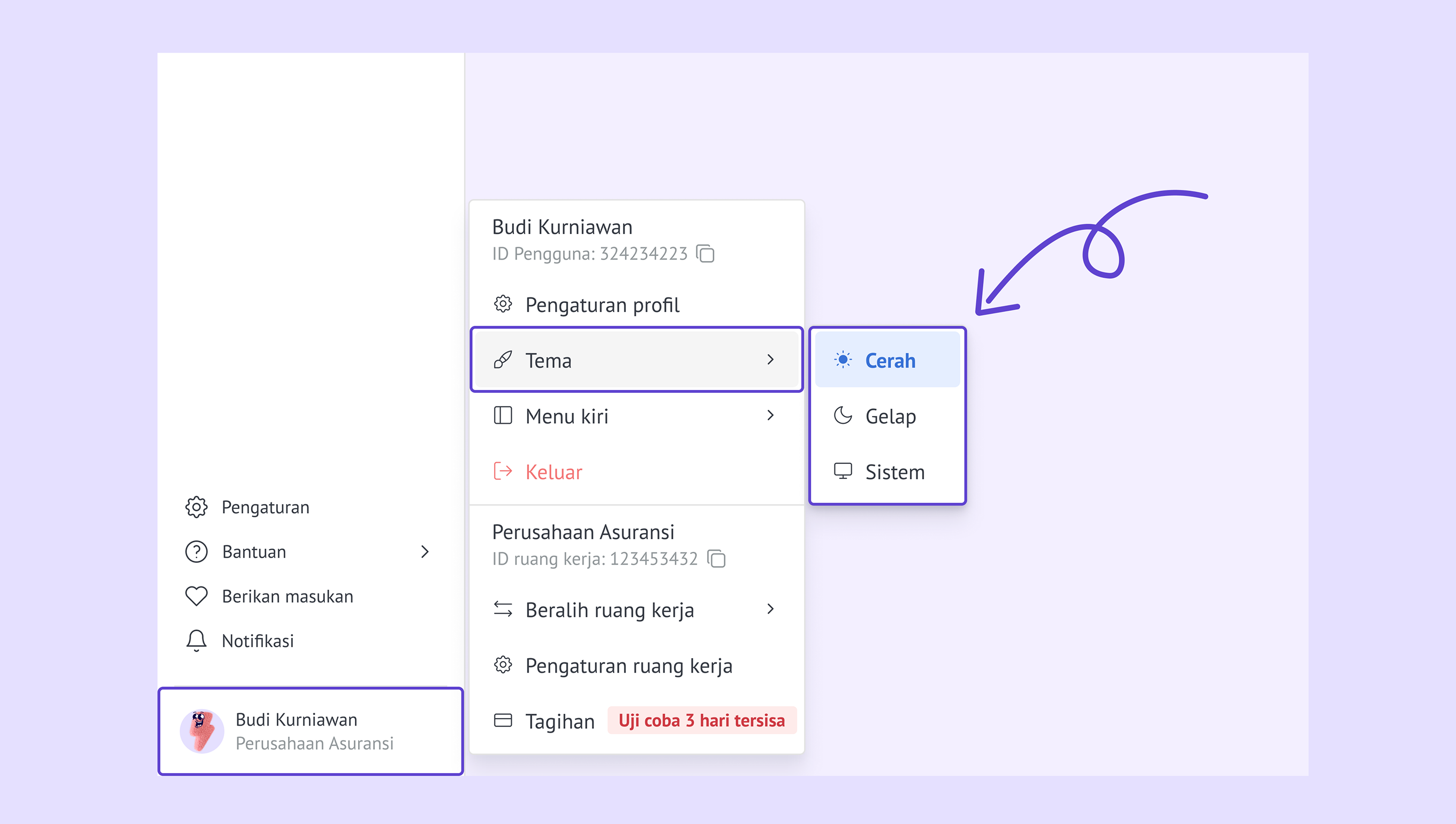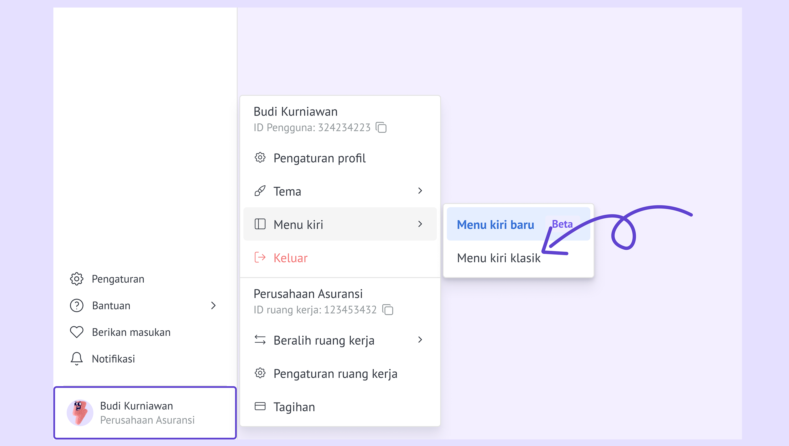 Pengaturan lebih pintar – Profil, notifikasi, ruang kerja, dan penagihan sekarang dikumpulkan di satu tempat, sehingga pengelolaan akun jadi lebih sederhana. -