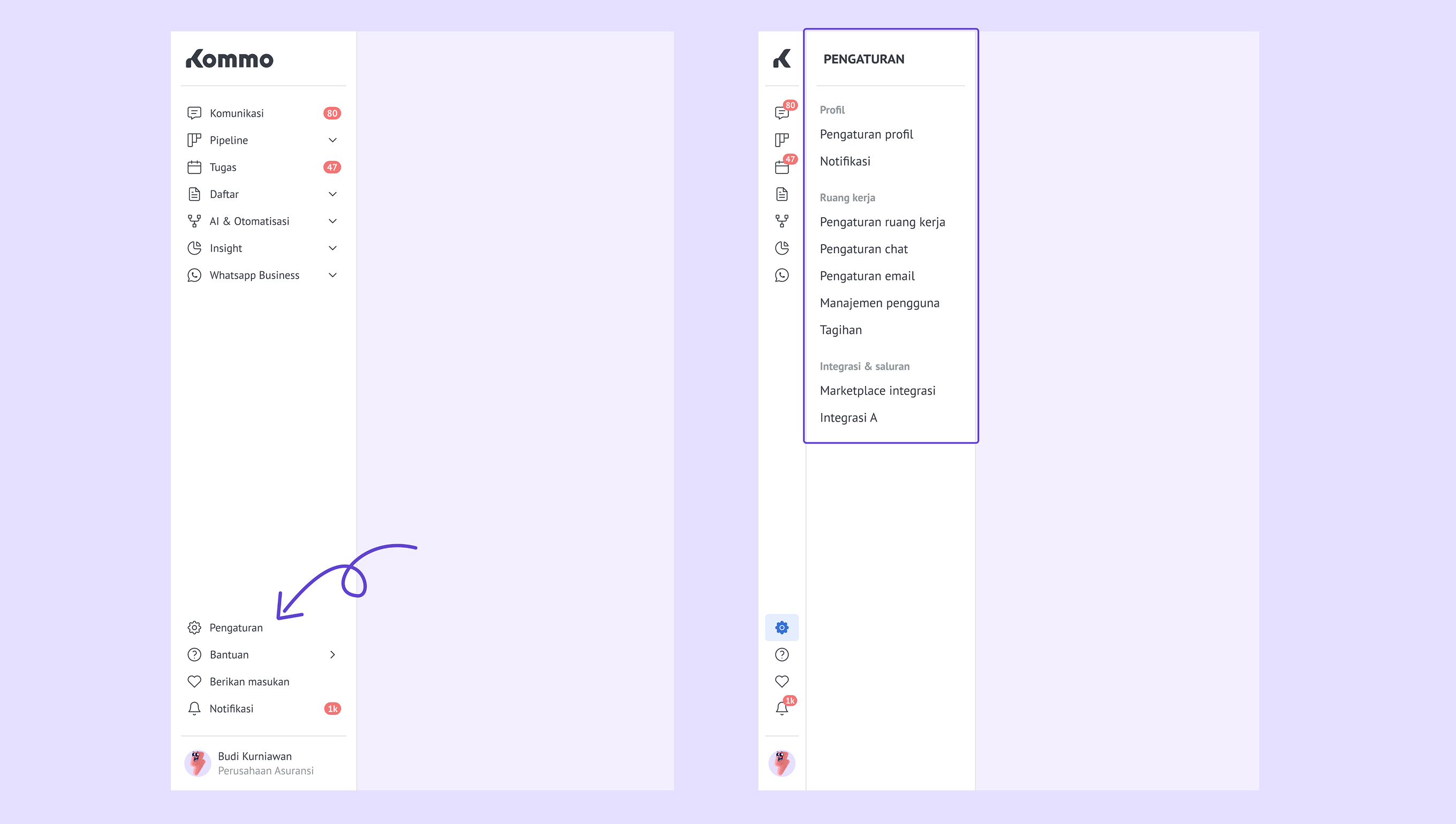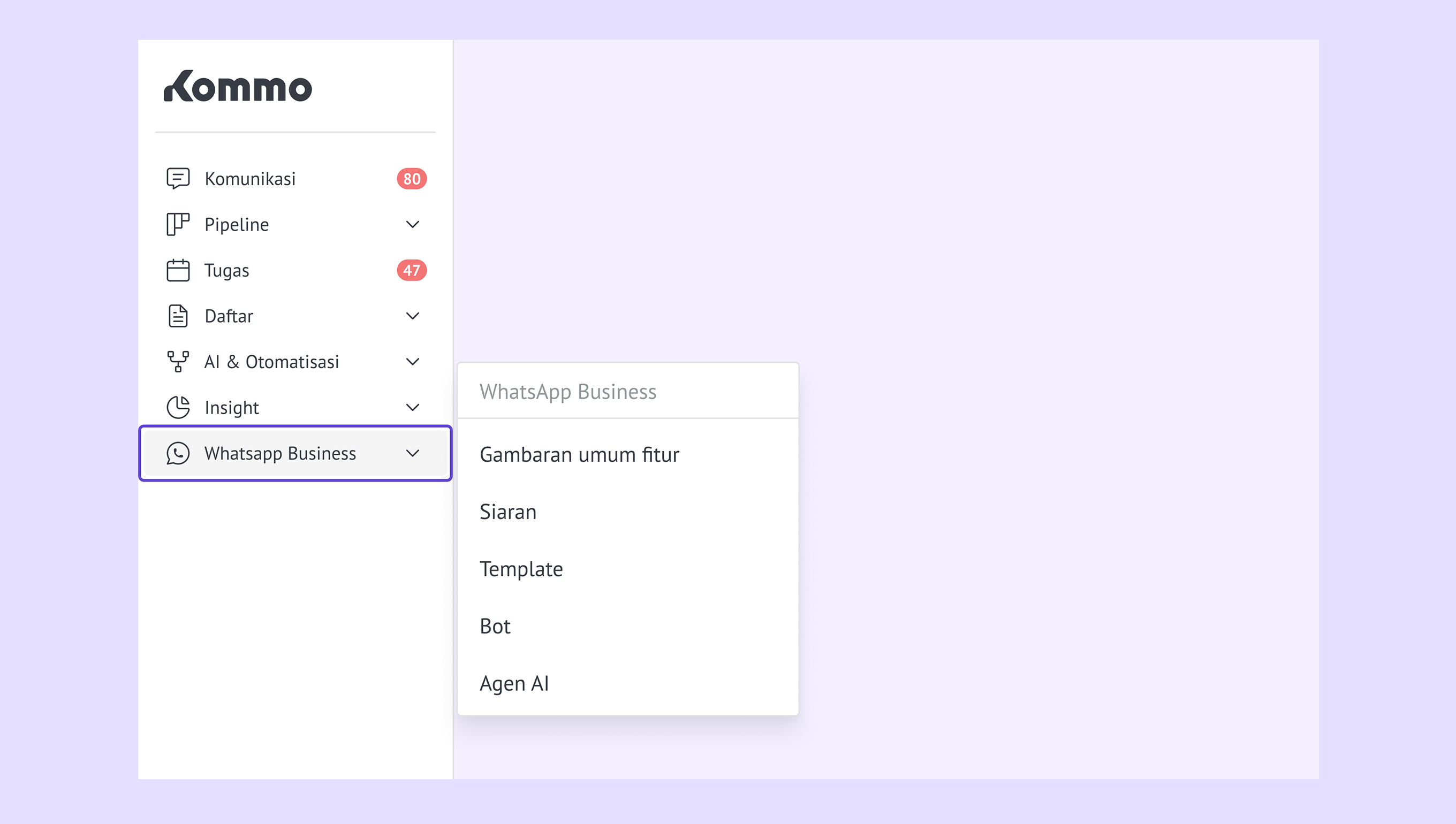 Kenalan dengan menu kiri baru Kommo