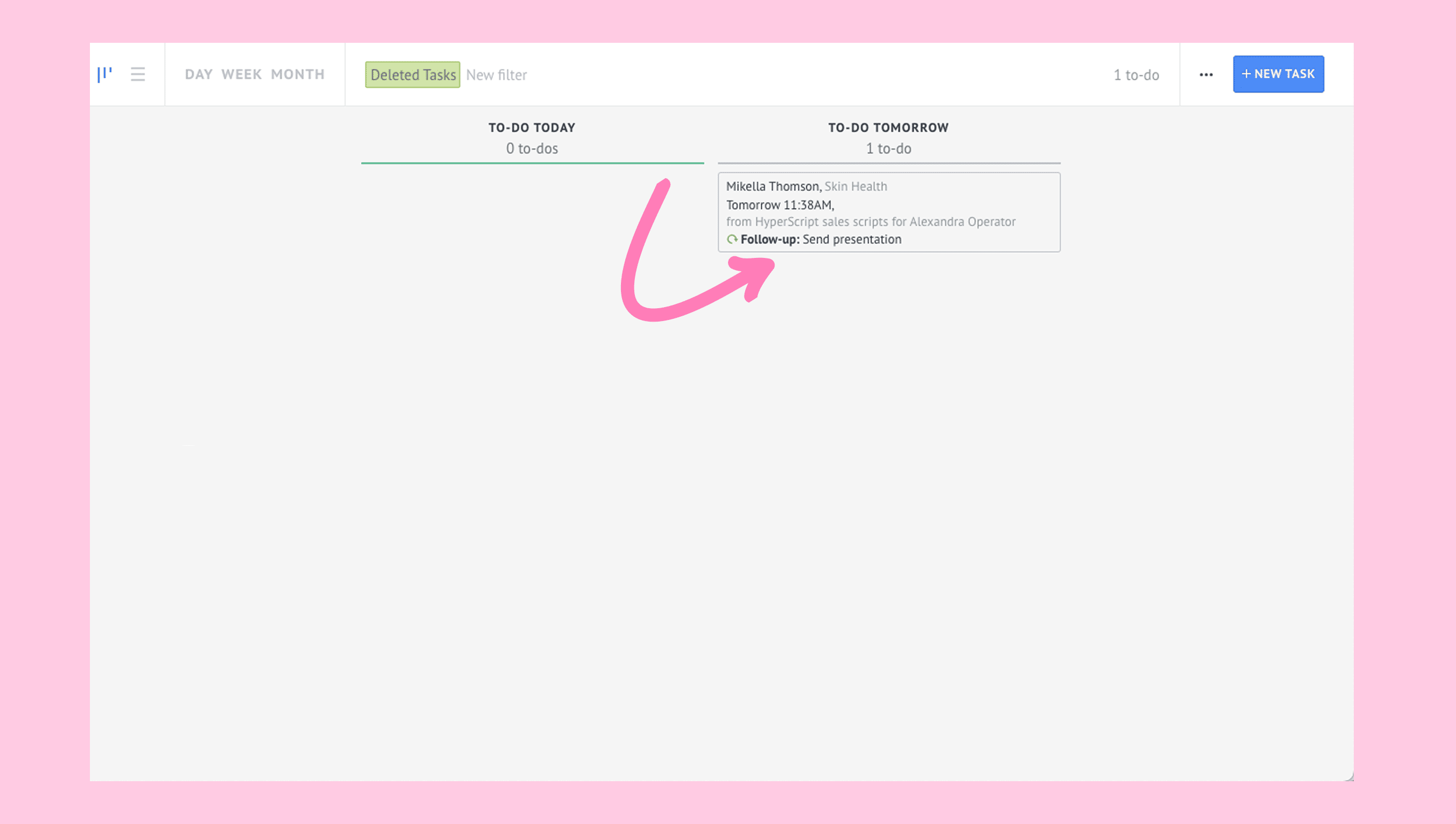 - Buka skrip di Kommo dan ikuti step-nya — tugas akan dibuat secara otomatis. Kamu bisa melihat semua tugas di bagian Tugas.