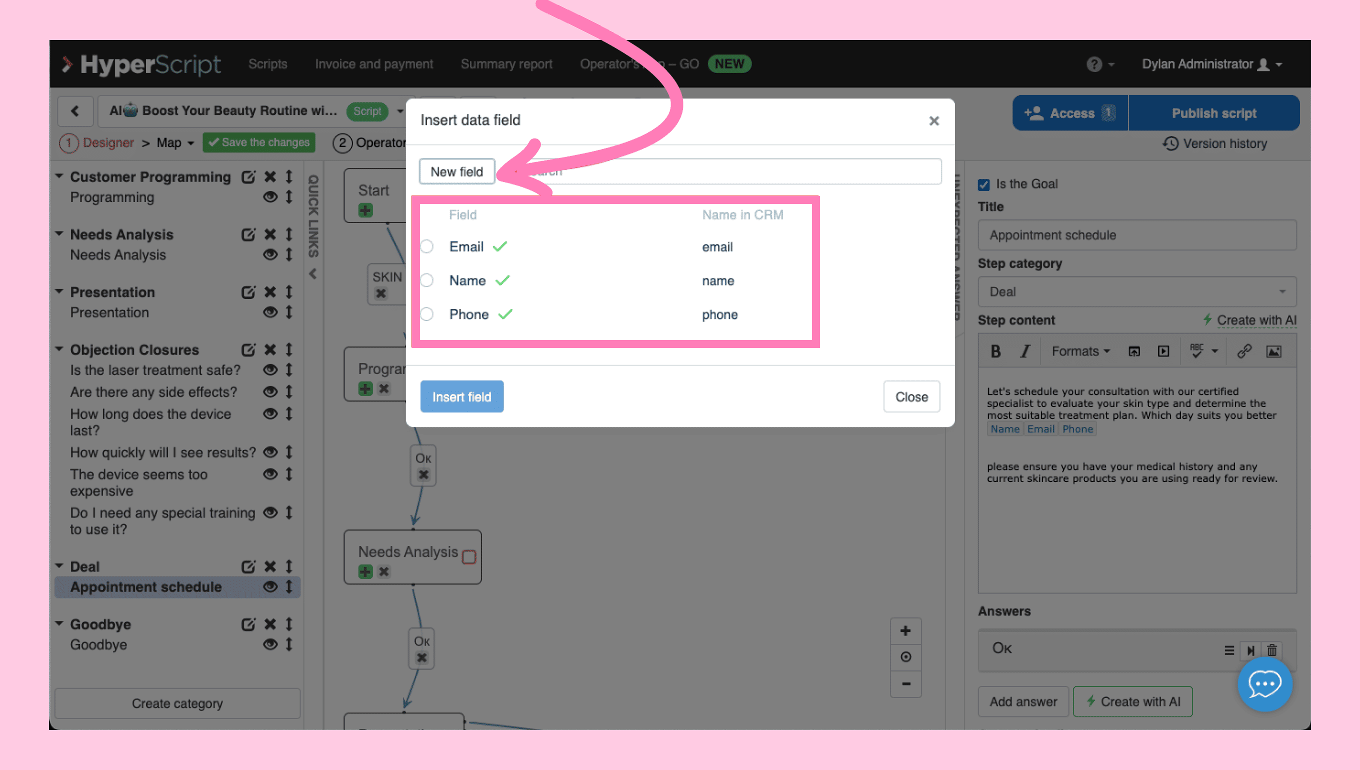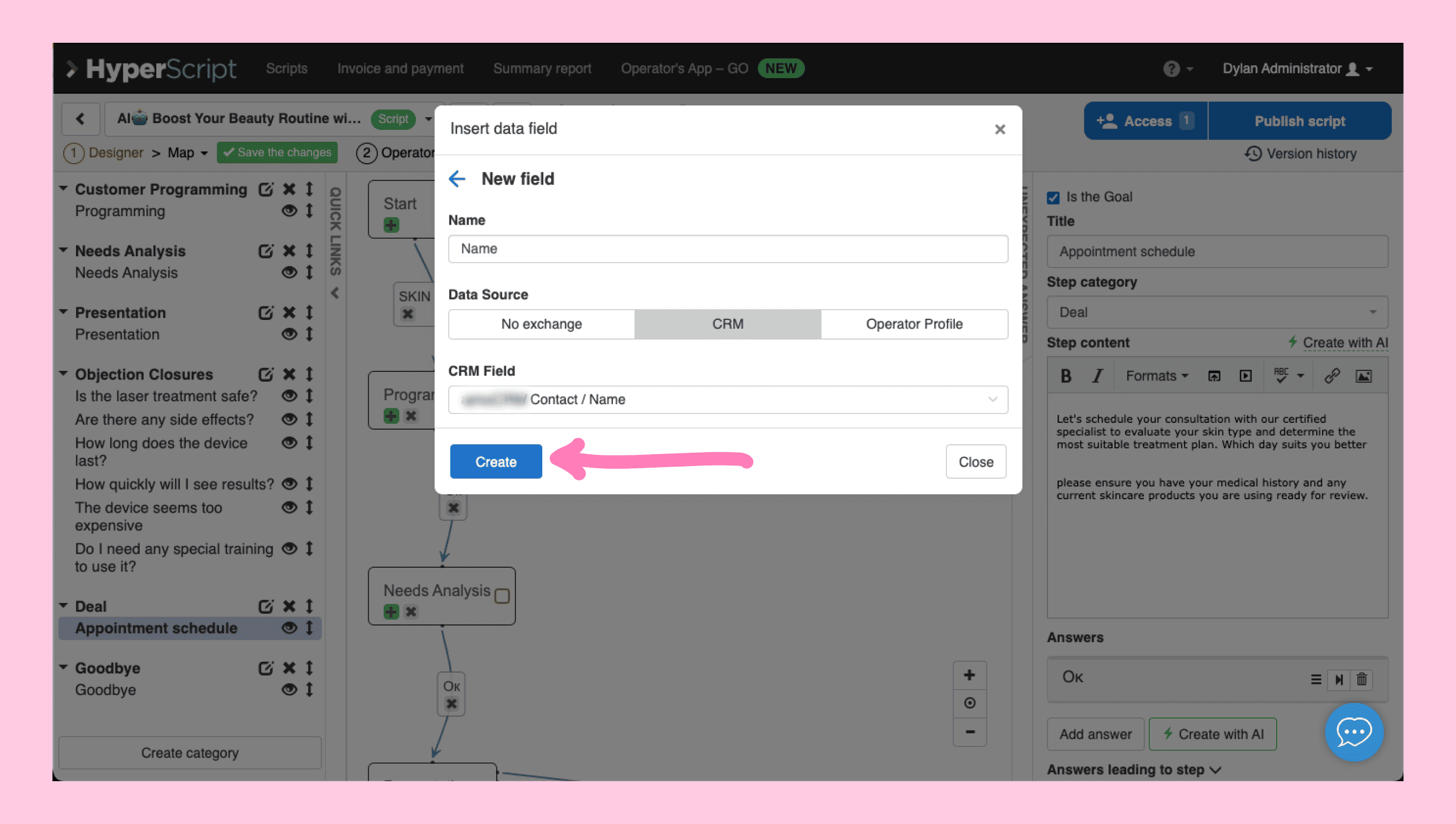 Dalam panduan ini, kamu akan belajar cara membuat skrip di HyperScript, menyinkronkan data skrip dengan Kommo, dan menyiapkan tugas otomatis yang dijalankan saat tim kamu menyelesaikan setiap skrip.