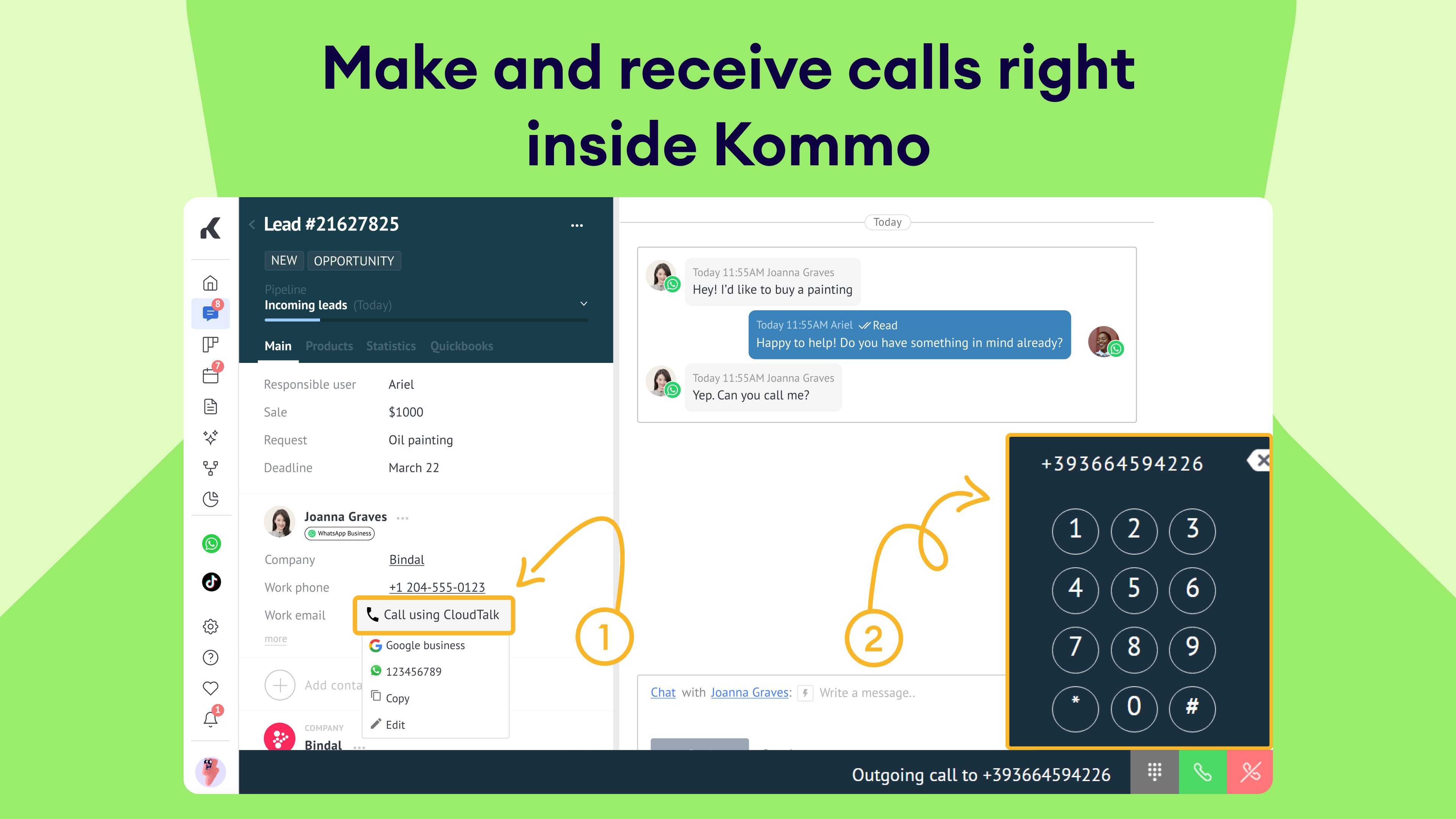 CloudTalk stands out for Kommo users because it makes calling effortless. With CloudTalk, sales teams don’t waste time switching tools; everything happens inside Kommo. Calls are crystal-clear, every conversation is automatically logged, and follow-ups never slip through the cracks. Users say it feels like having a personal call assistant built into their CRM, helping them focus on what matters most: building relationships and closing sales.