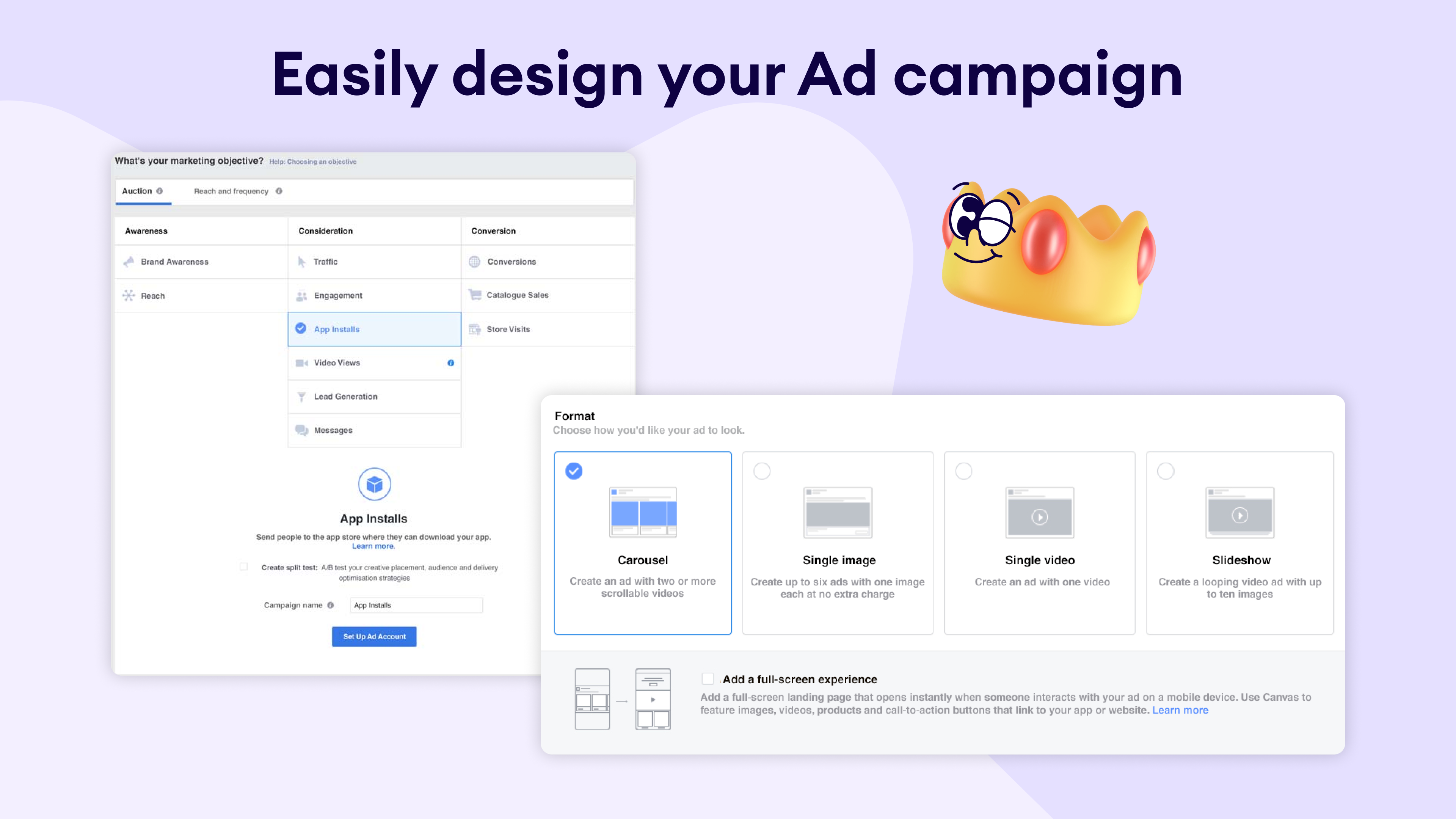 Configure the settings - select your Facebook ad account, campaign, ad group, and define audience criteria.