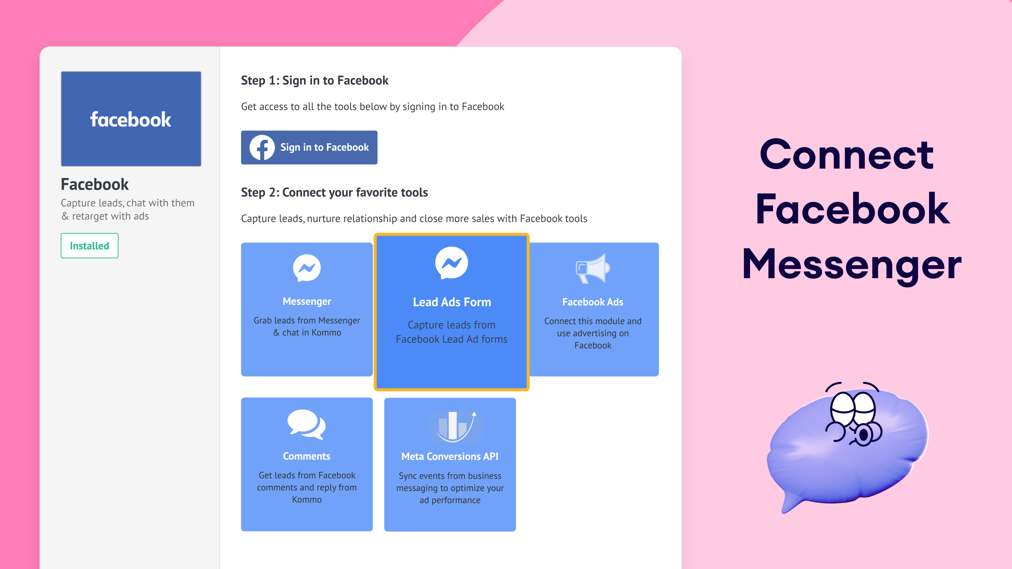 To set up the Facebook Lead Forms integration in Kommo: