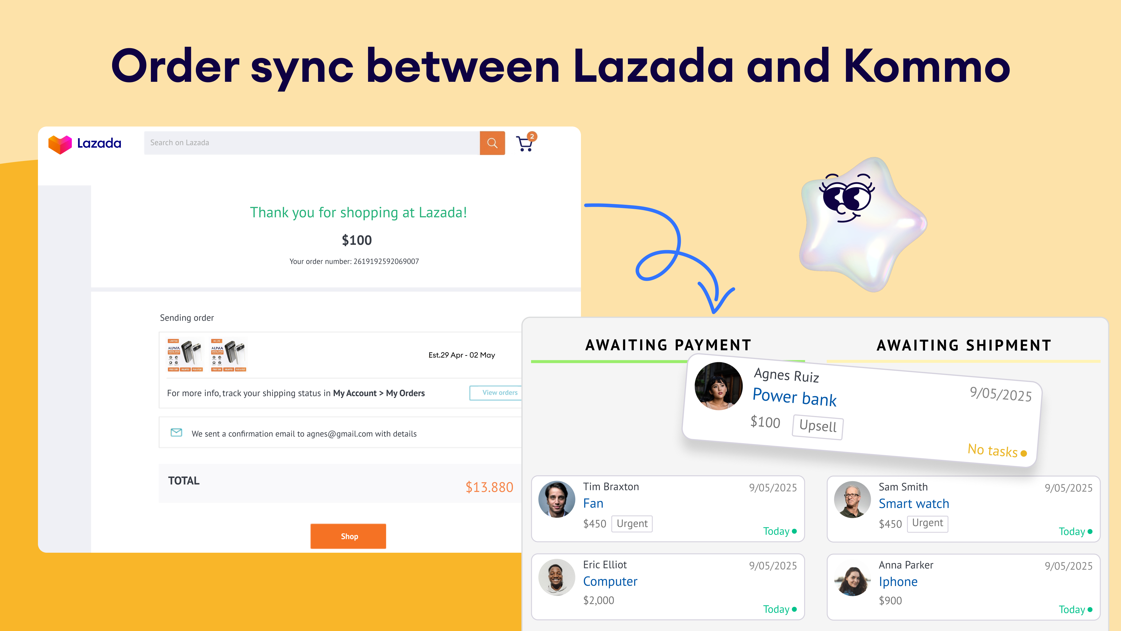 The Lazada integration in Kommo brings your marketplace operations into your CRM. Customer messages become leads, product and order data stays organized on lead cards, and AI-powered automation keeps your store running smoothly. From answering questions to tracking orders, everything happens in one workspace.
