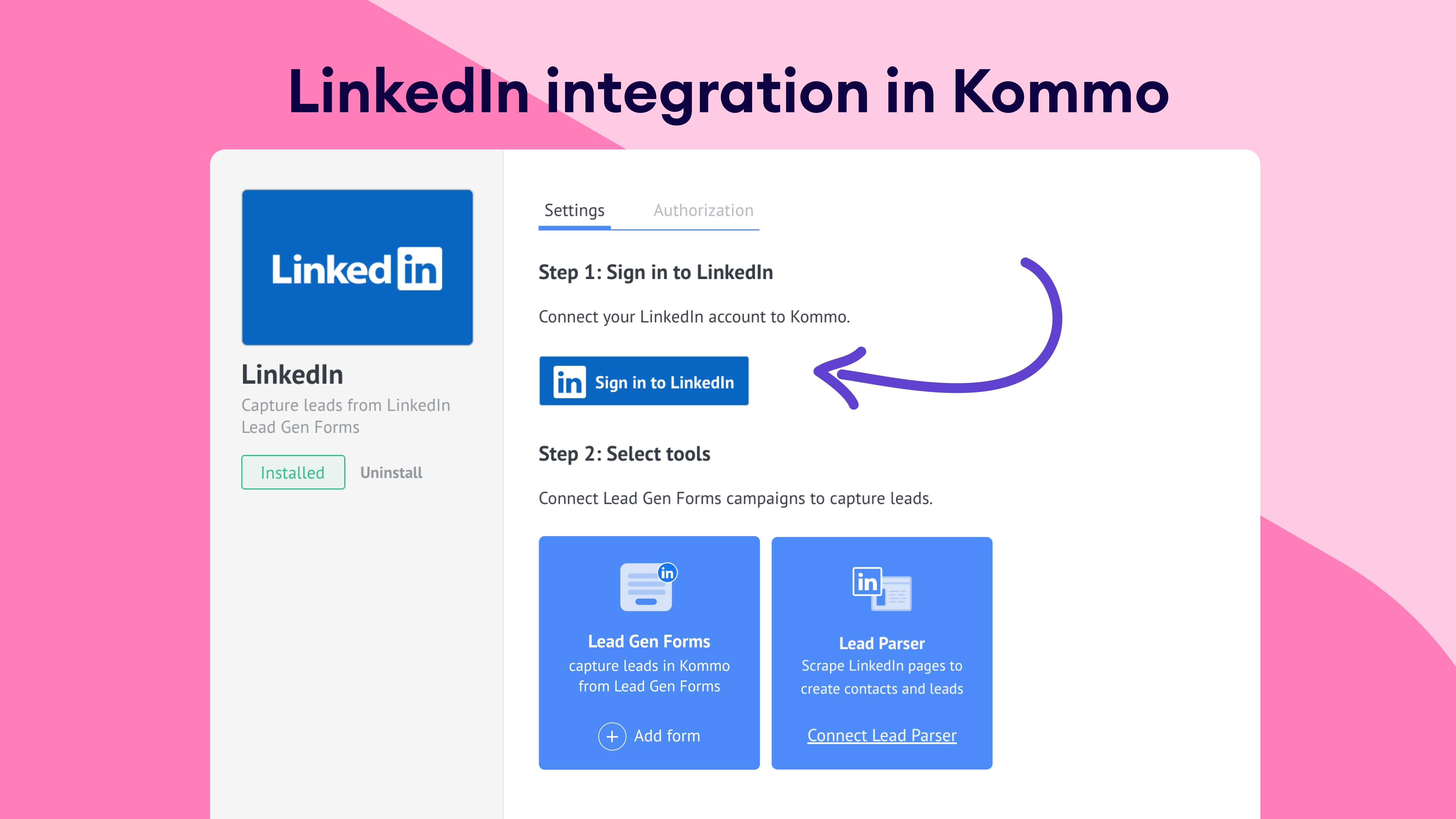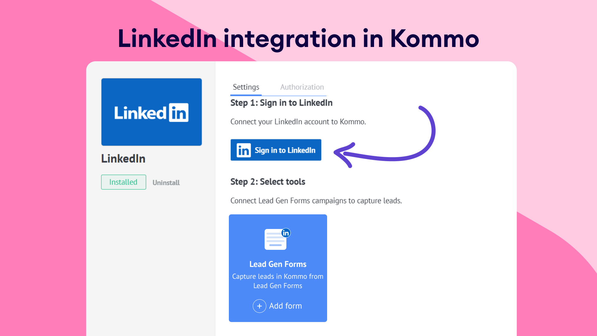 - Click Sign in to LinkedIn and authorize Kommo to access your account.