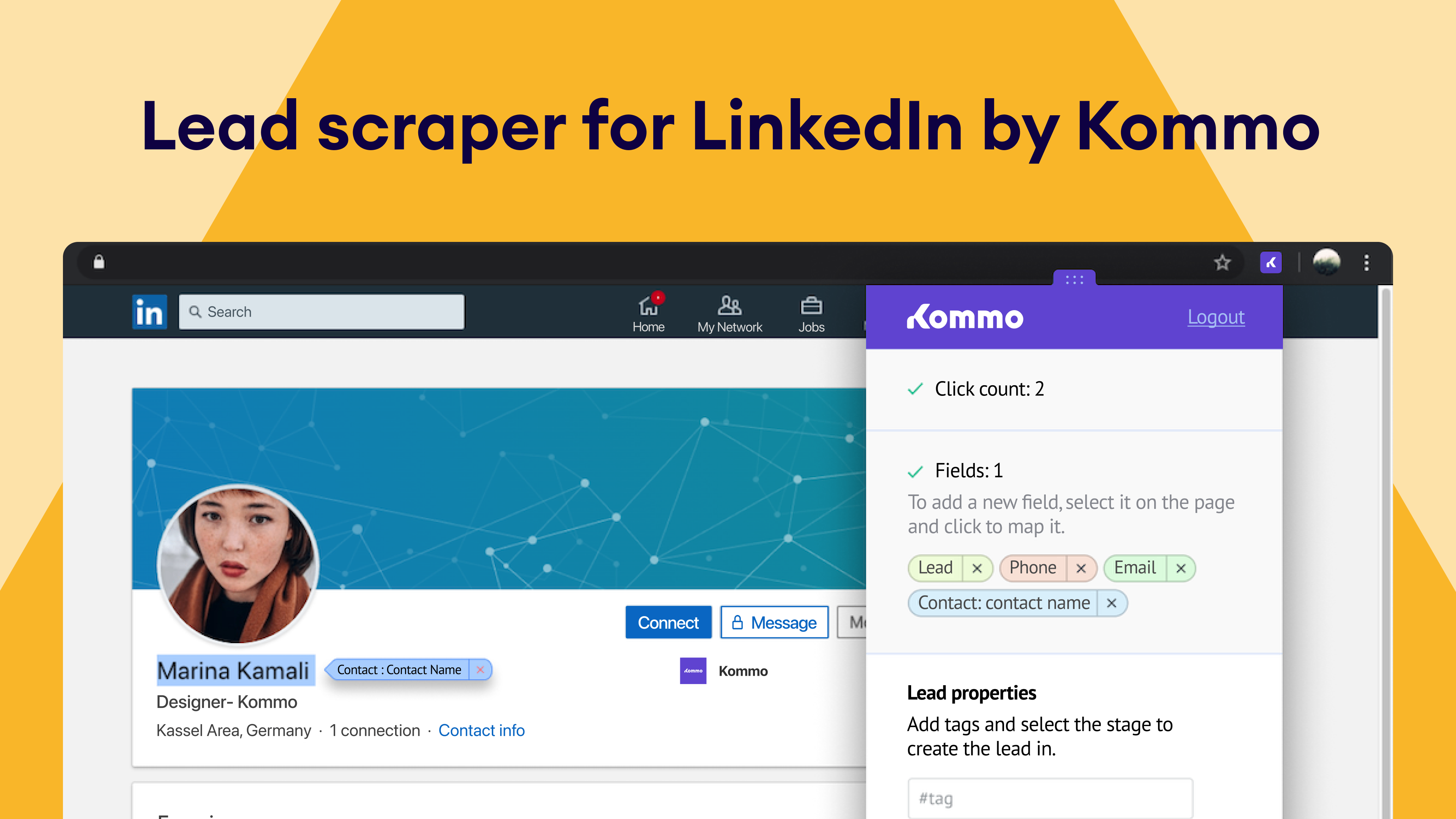 Field mapping: Choose the profile card fields you want to grab and map them to Kommo.