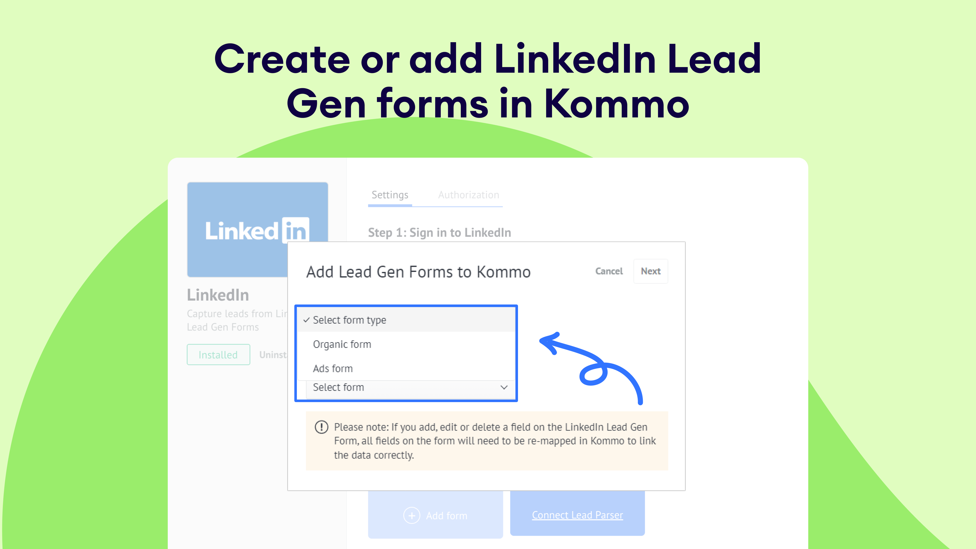 Form integration: Connect LinkedIn Lead Gen Forms to Kommo so prospects who fill out your ads or forms automatically appear in your CRM.