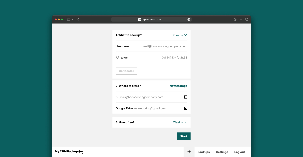 By integrating MyCRMBackup with Kommo, you can securely store your CRM data without lifting a finger. This smart tool backs up everything to your Google Drive — daily or weekly — so your information is always safe and up to date.