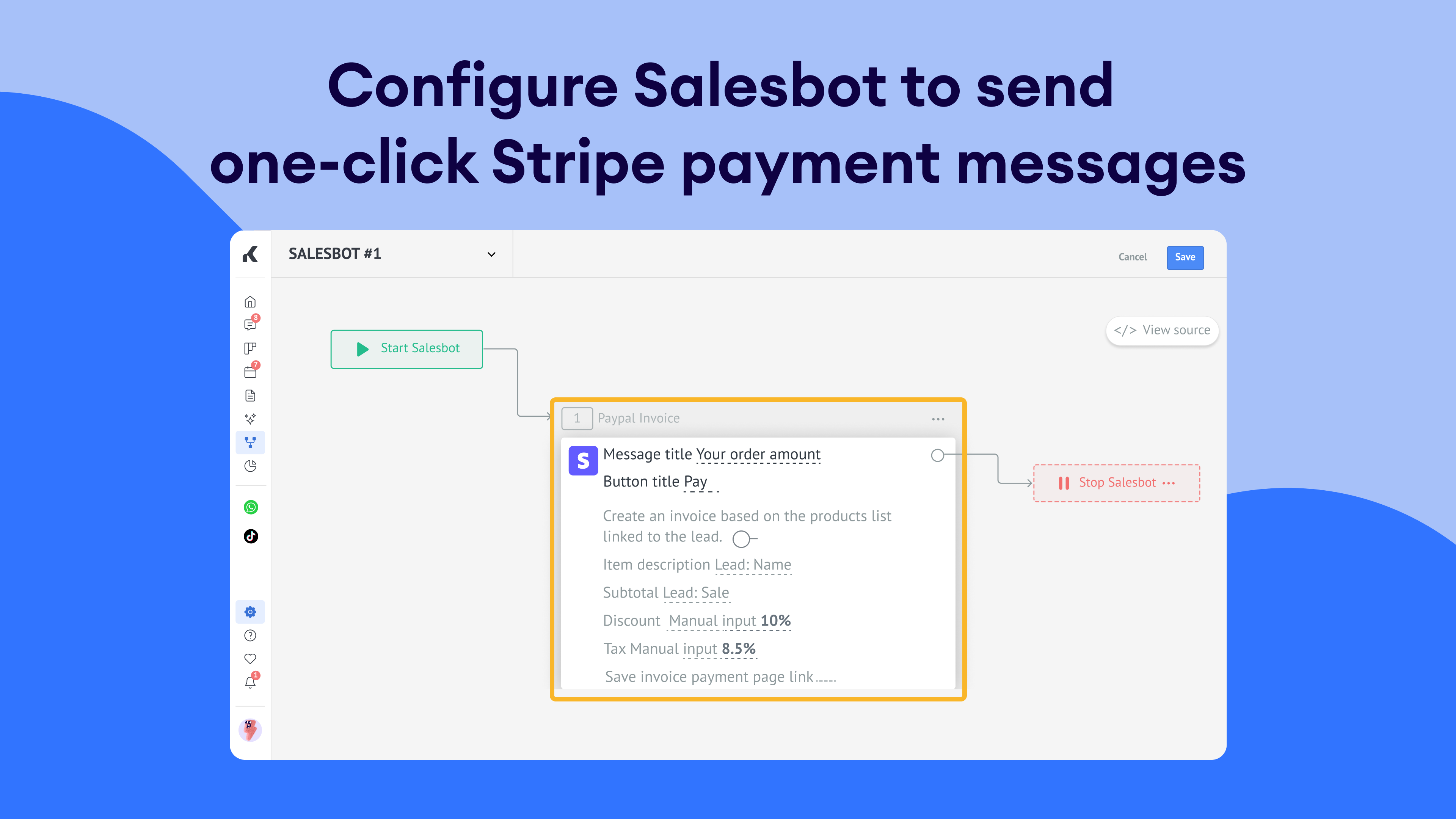 Salesbot integration: Use Salesbot to send payment links to clients via chat, facilitating quick and easy payments.