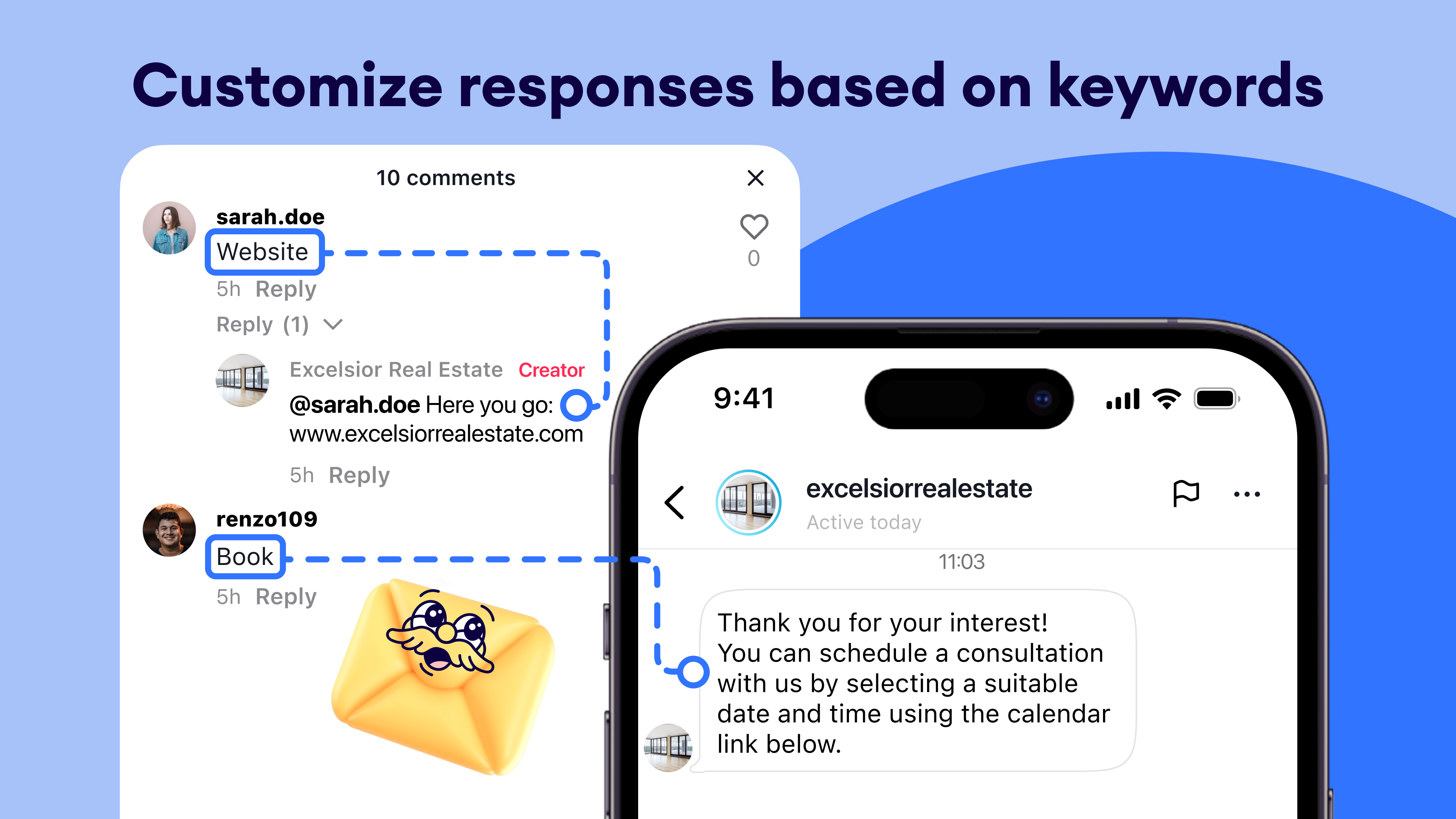 Keyword-triggered actions: Set up Salesbot to auto-reply with messages or comments when specific keywords are used, keeping replies relevant and timely.