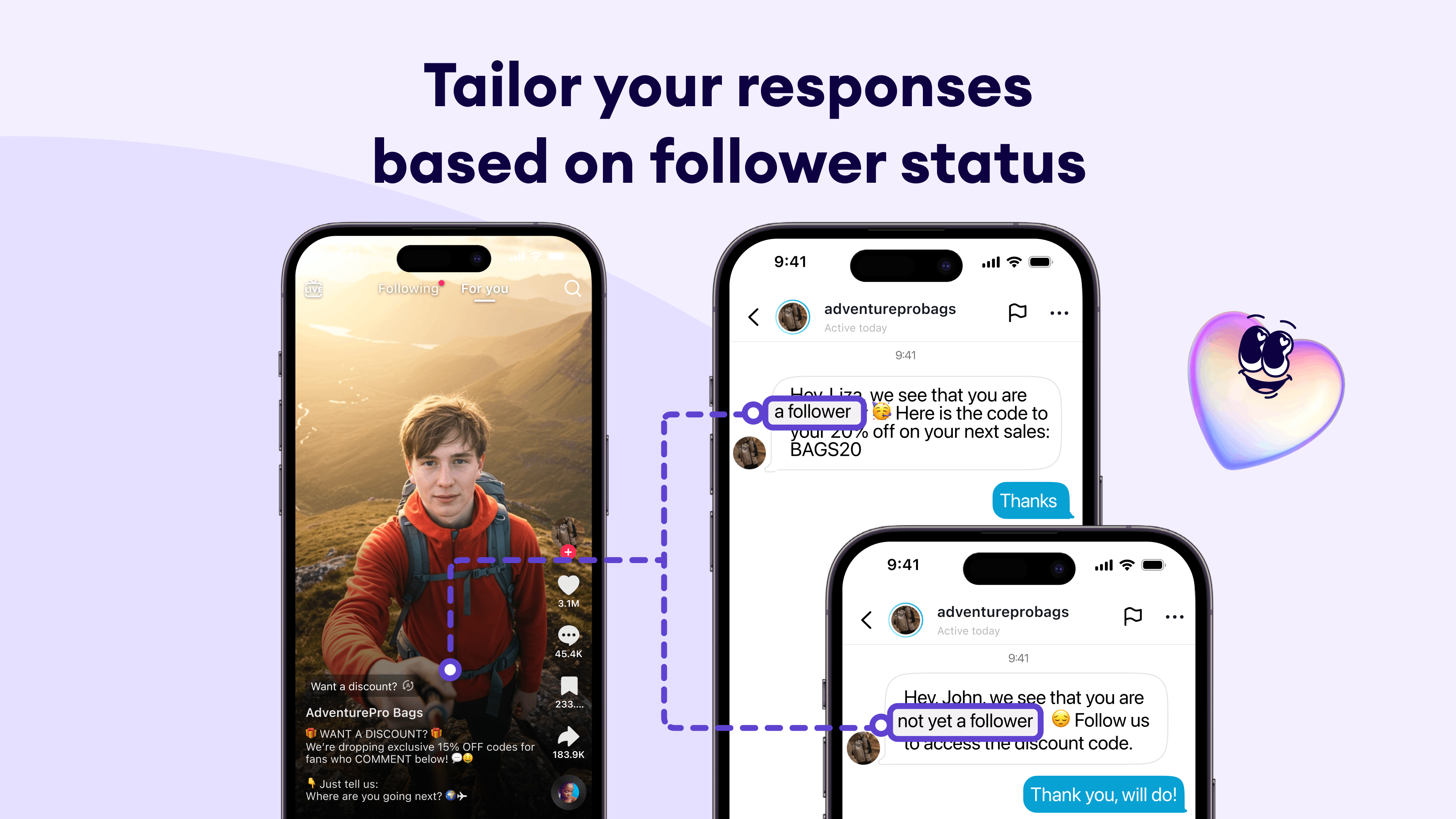 Ad-specific replies: Automatically send personalized messages, like discount codes or special offers, based on which TikTok ad a user responded to.