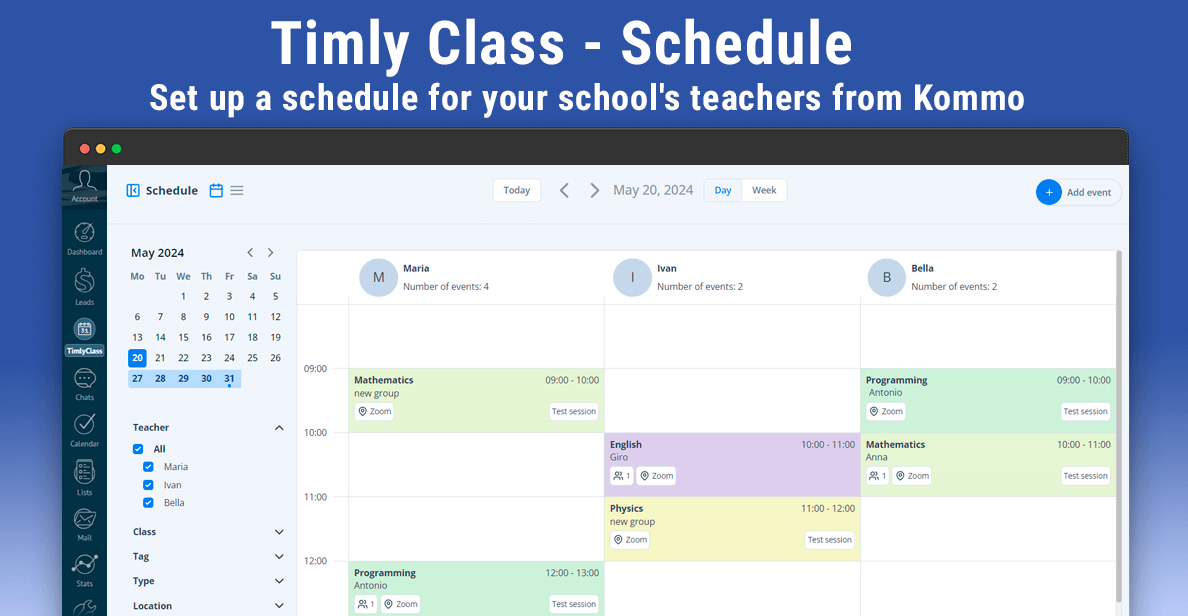 Kommo users and schools love Timly Class because it makes managing academic and financial tasks easy. It combines important features like scheduling, attendance tracking, subscription management, payroll processing, and analytics into one simple platform.