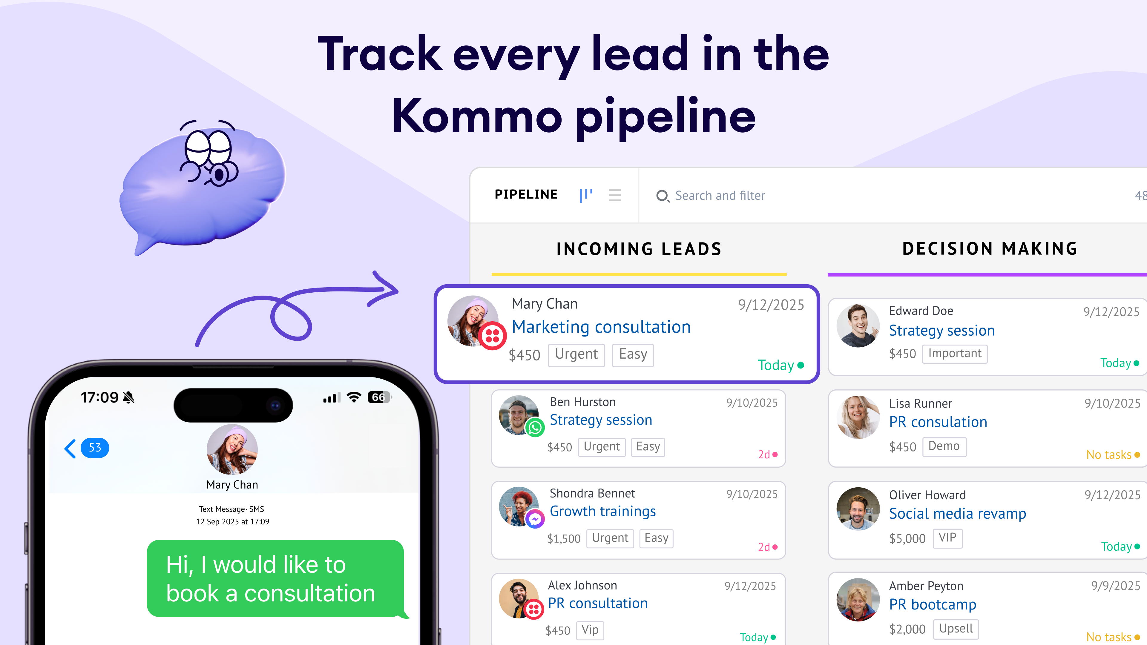 Twilio on its own is a powerful SMS tool, but inside Kommo, it becomes much more. Kommo transforms simple texting into a fully integrated sales and communication hub. Instead of juggling multiple apps, your team can send, track, and organize SMS directly alongside every deal and contact. Automations, smart templates, and multi-channel visibility turn ordinary texting into a strategic advantage - helping you close deals faster and keep conversations flowing without missing a beat.