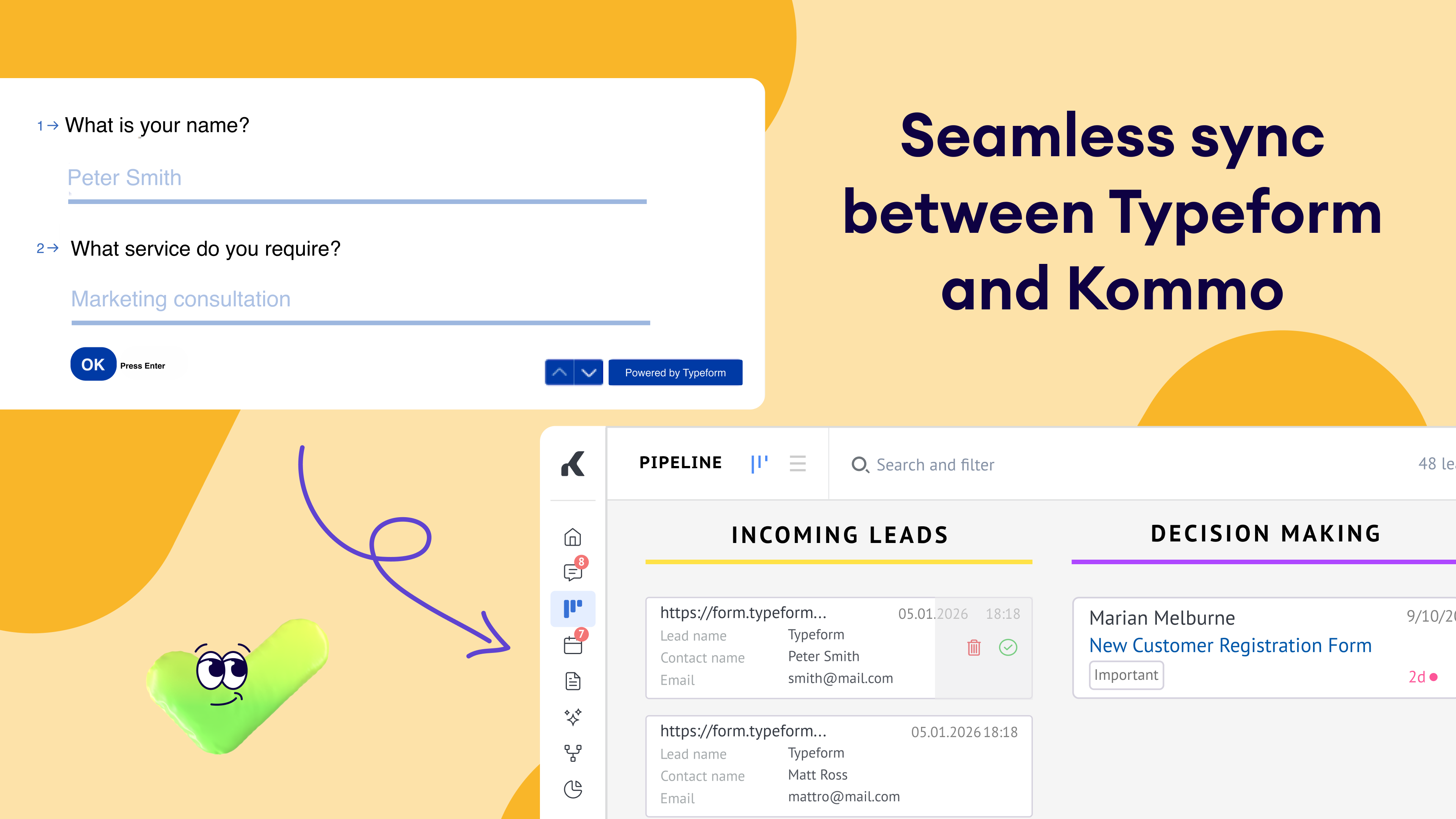 Instant lead creation: Automatically create leads in Kommo whenever a Typeform is submitted, ensuring no lead is missed.
