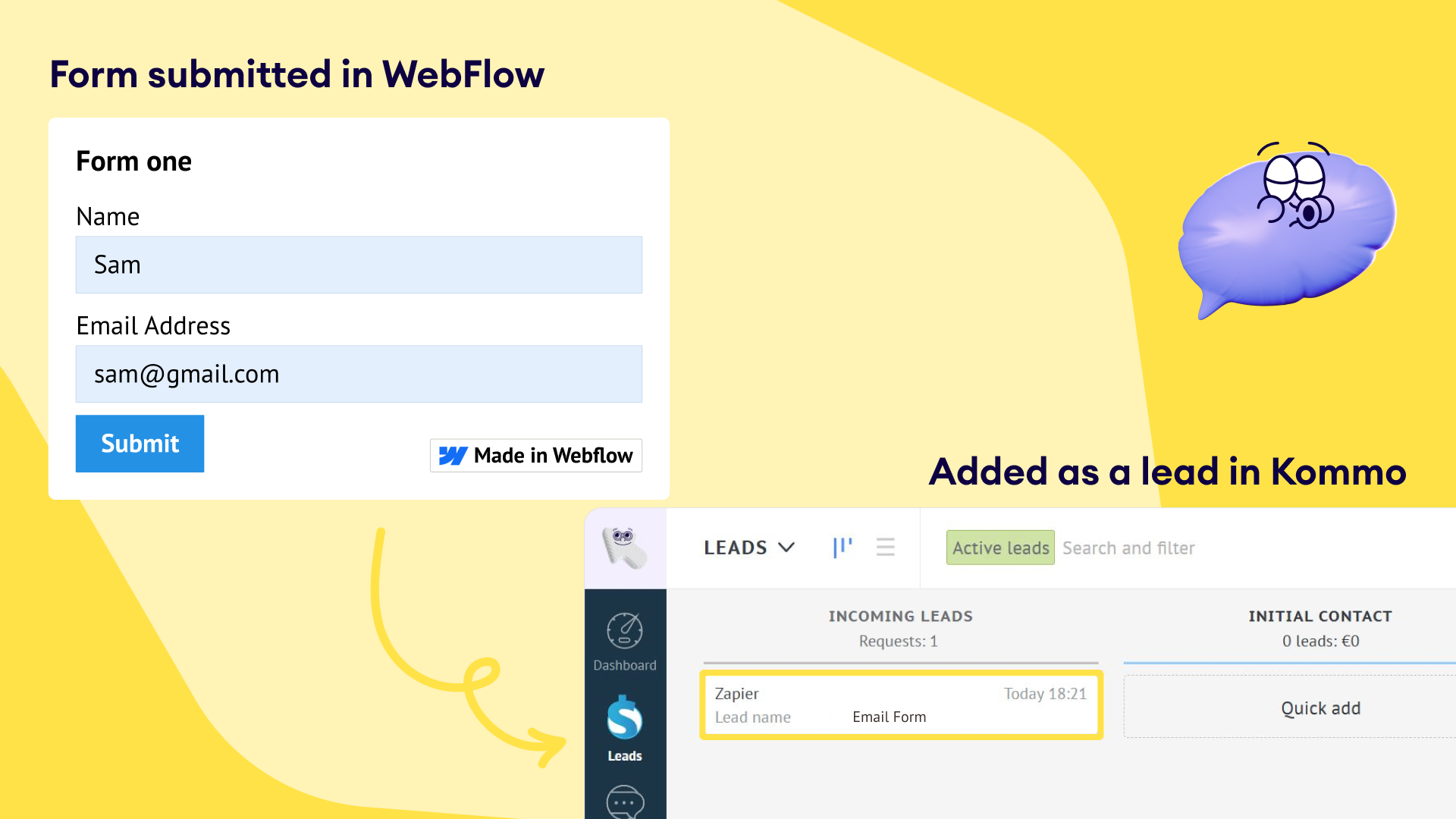 Via Zapier, Webflow becomes more than just a website; it’s a powerful lead-generation engine. Kommo users love how every form submission flows straight into their CRM, ready for follow-up. It’s fast, automated, and designed to help sales teams respond instantly and never miss a lead.