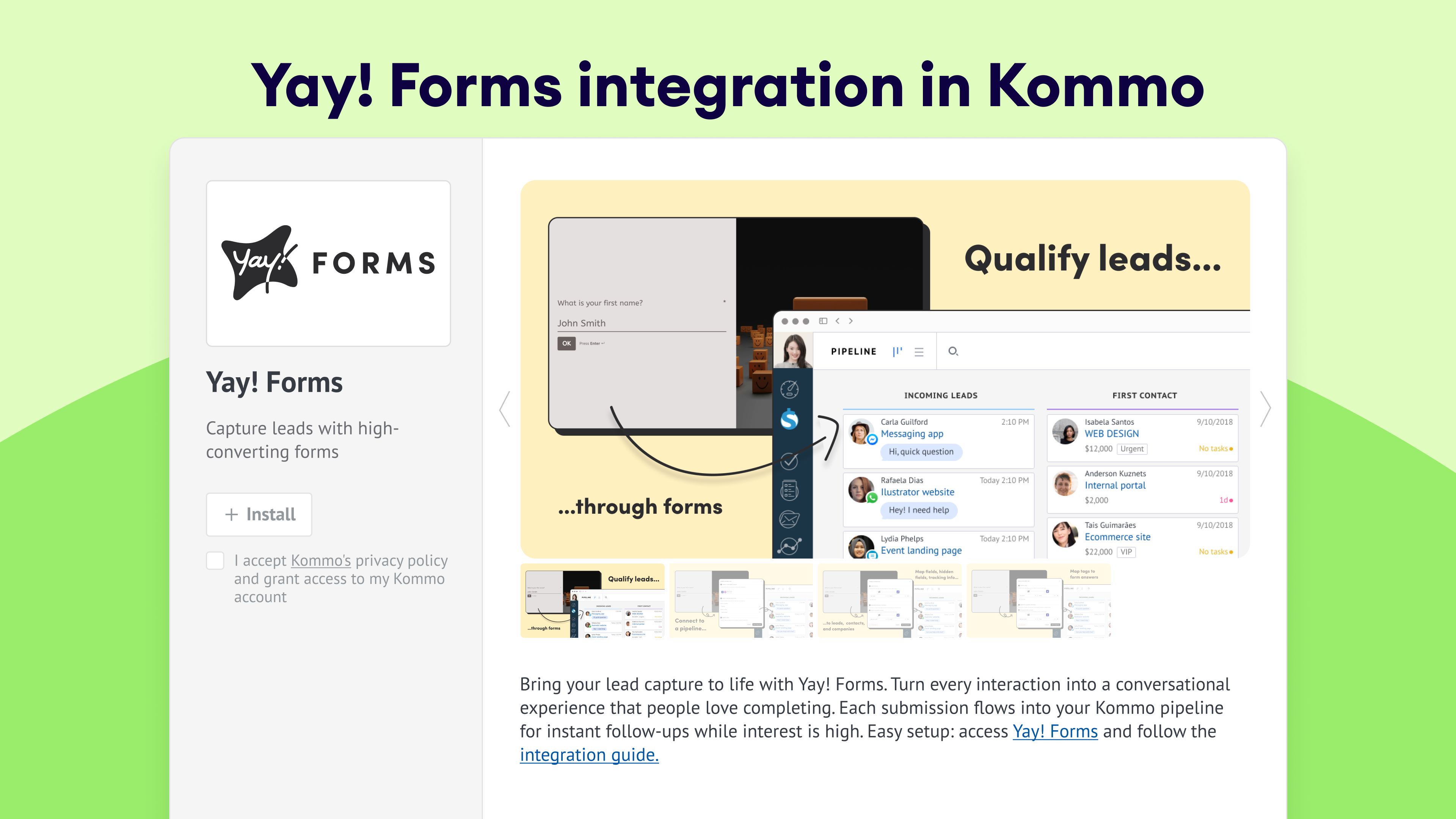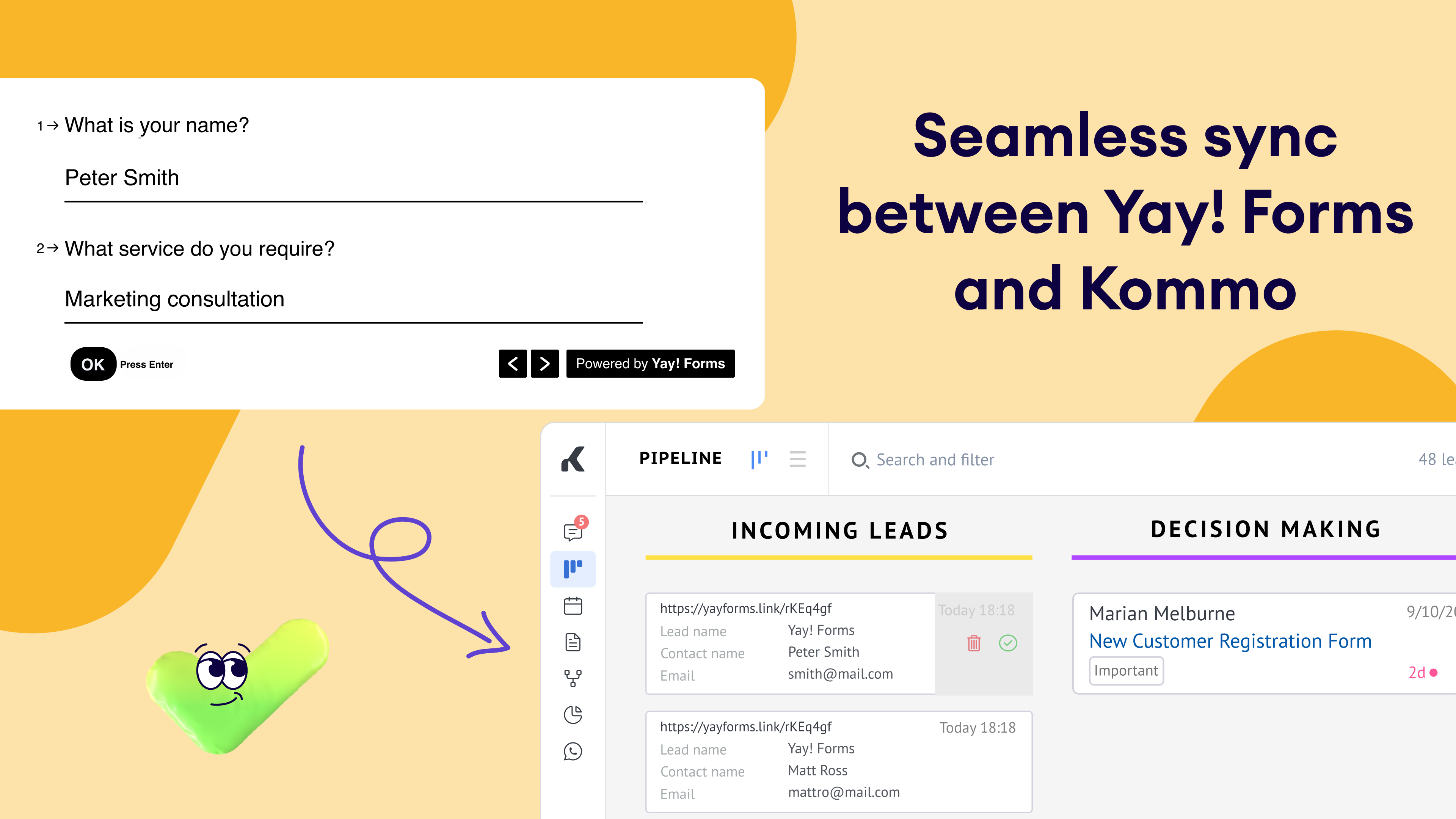 Connecting Yay! Forms to Kommo only takes a few clicks. Once set up, every form submission flows directly into your CRM:
