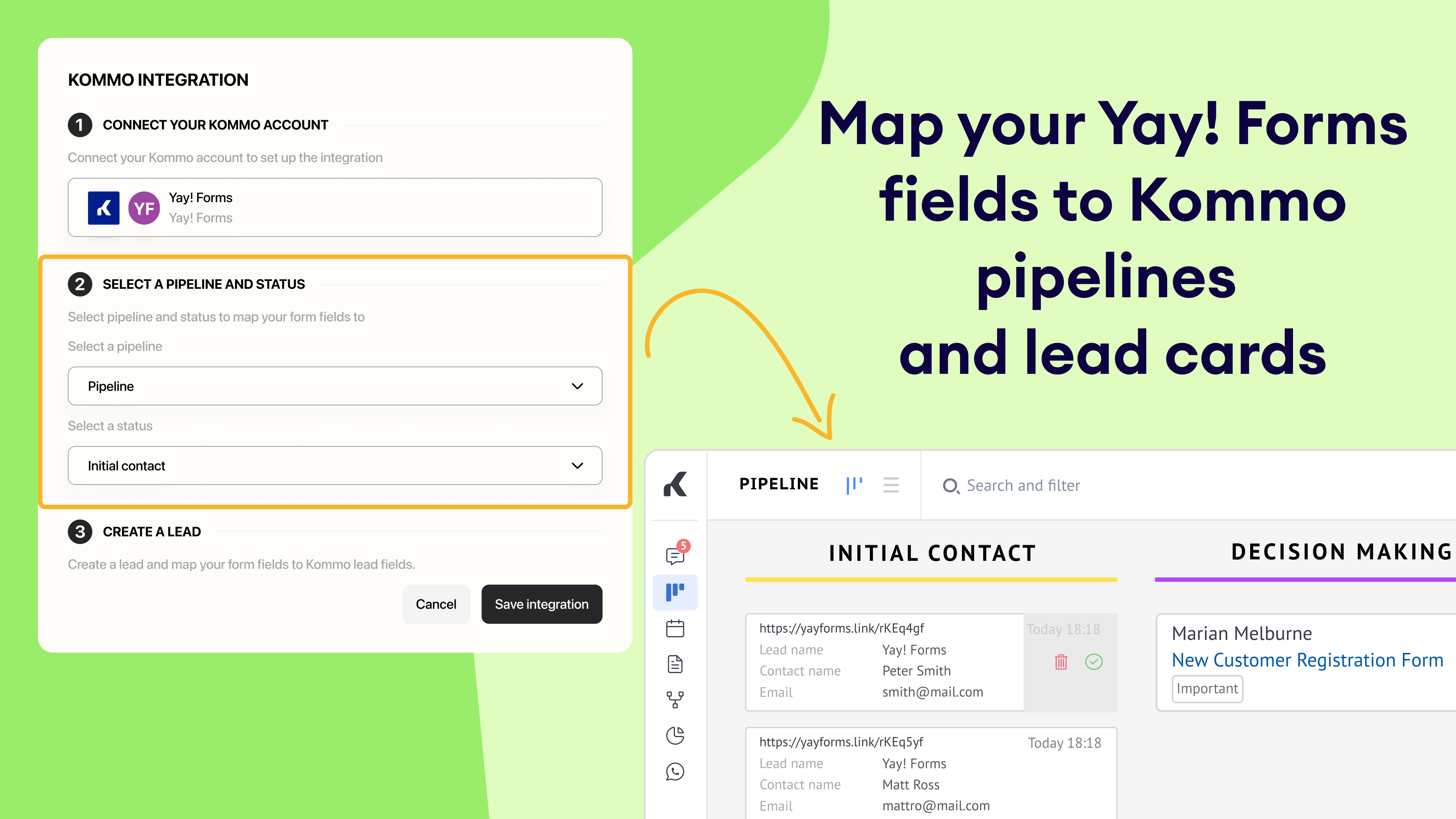 - Map your Yay! Forms fields to Kommo lead fields.