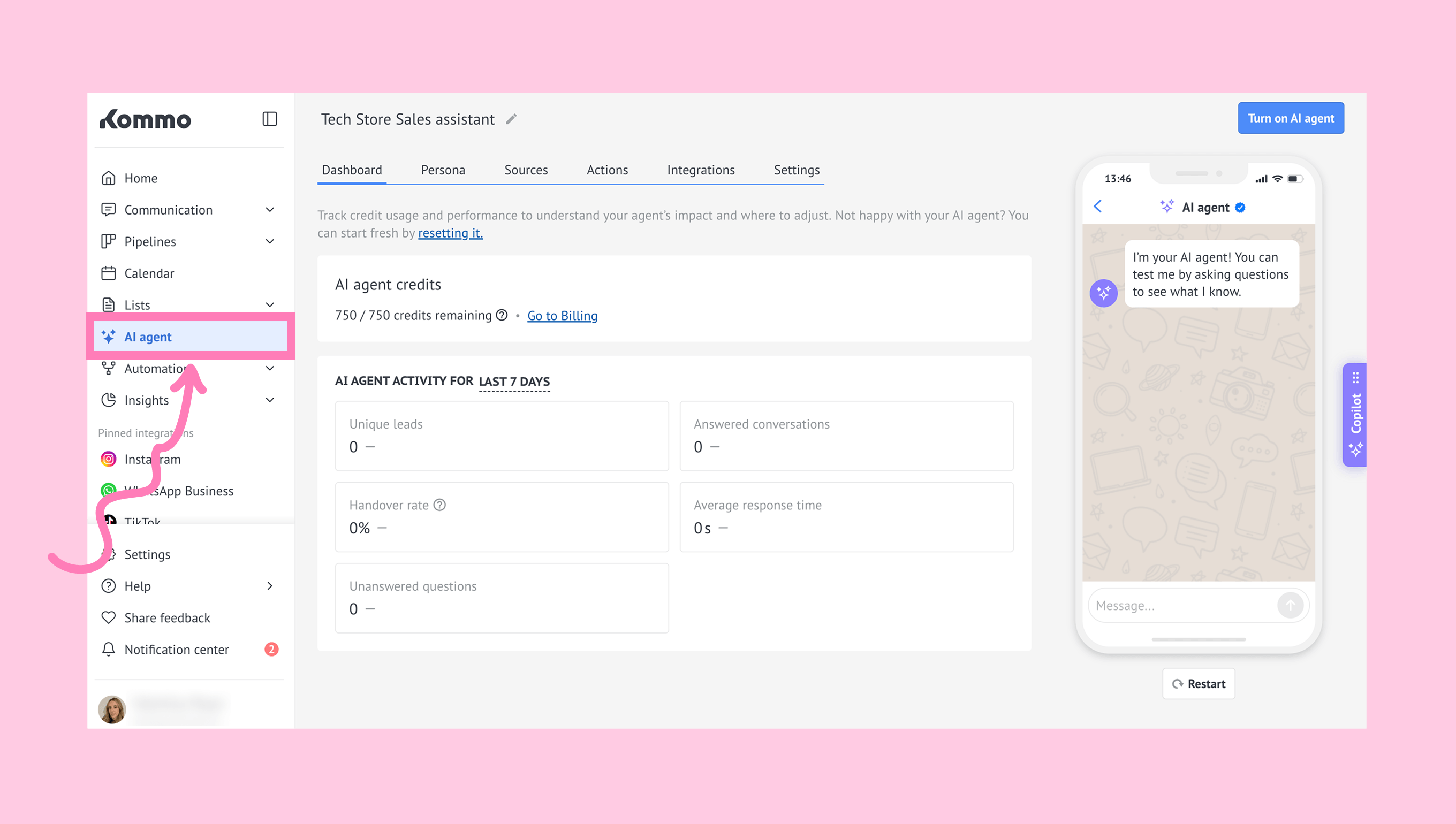 Go to the AI agent section.