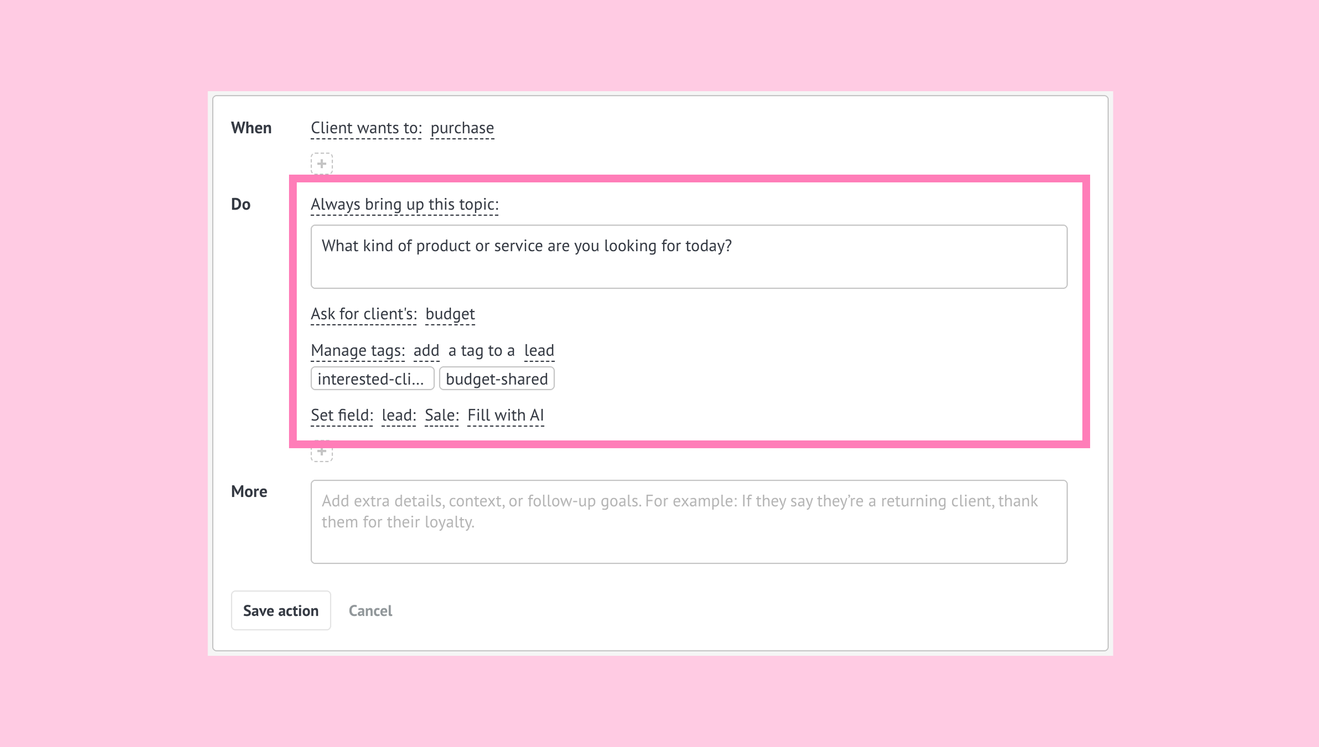 DO - actions the AI agent will execute when the conditions are met.