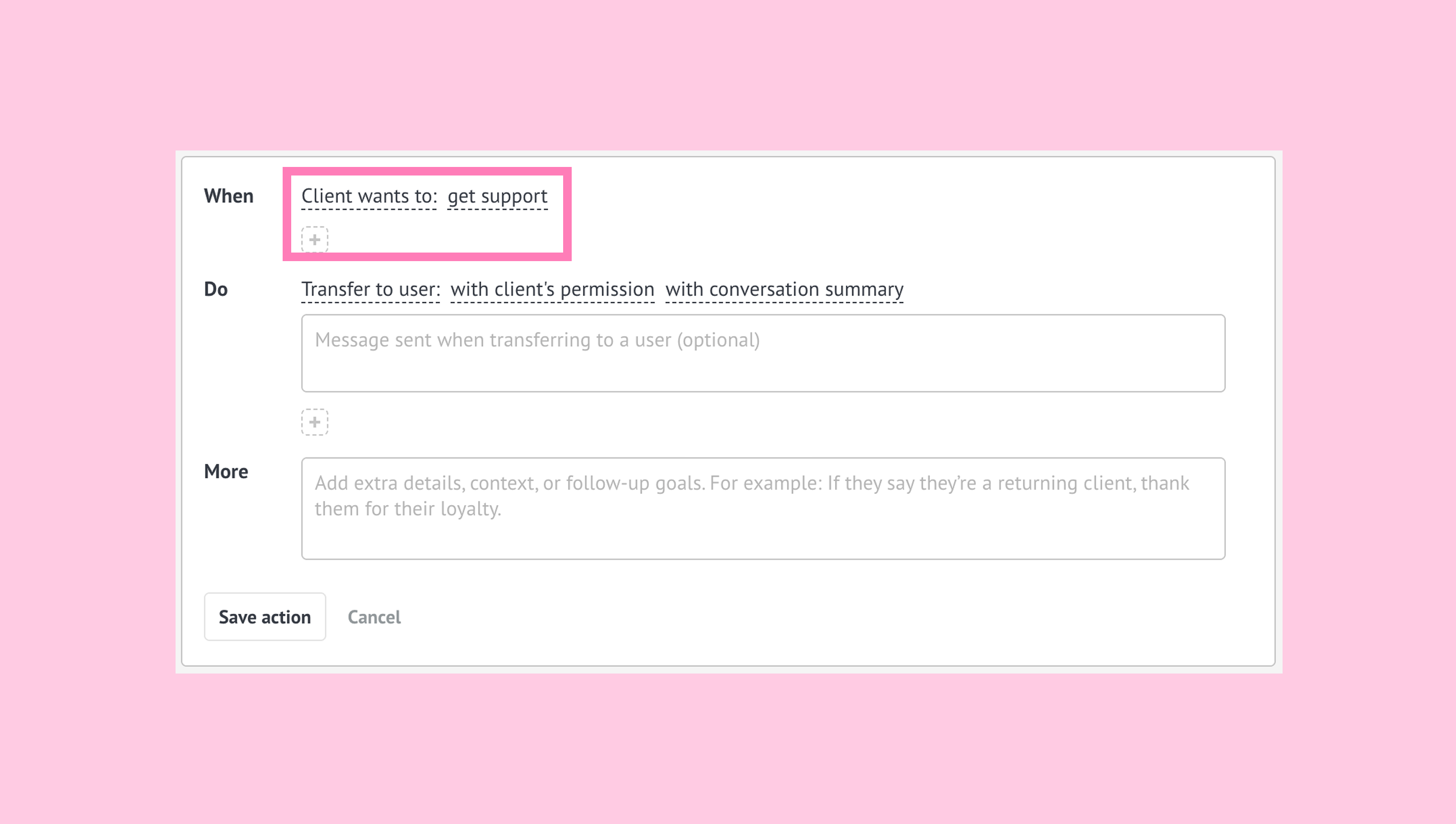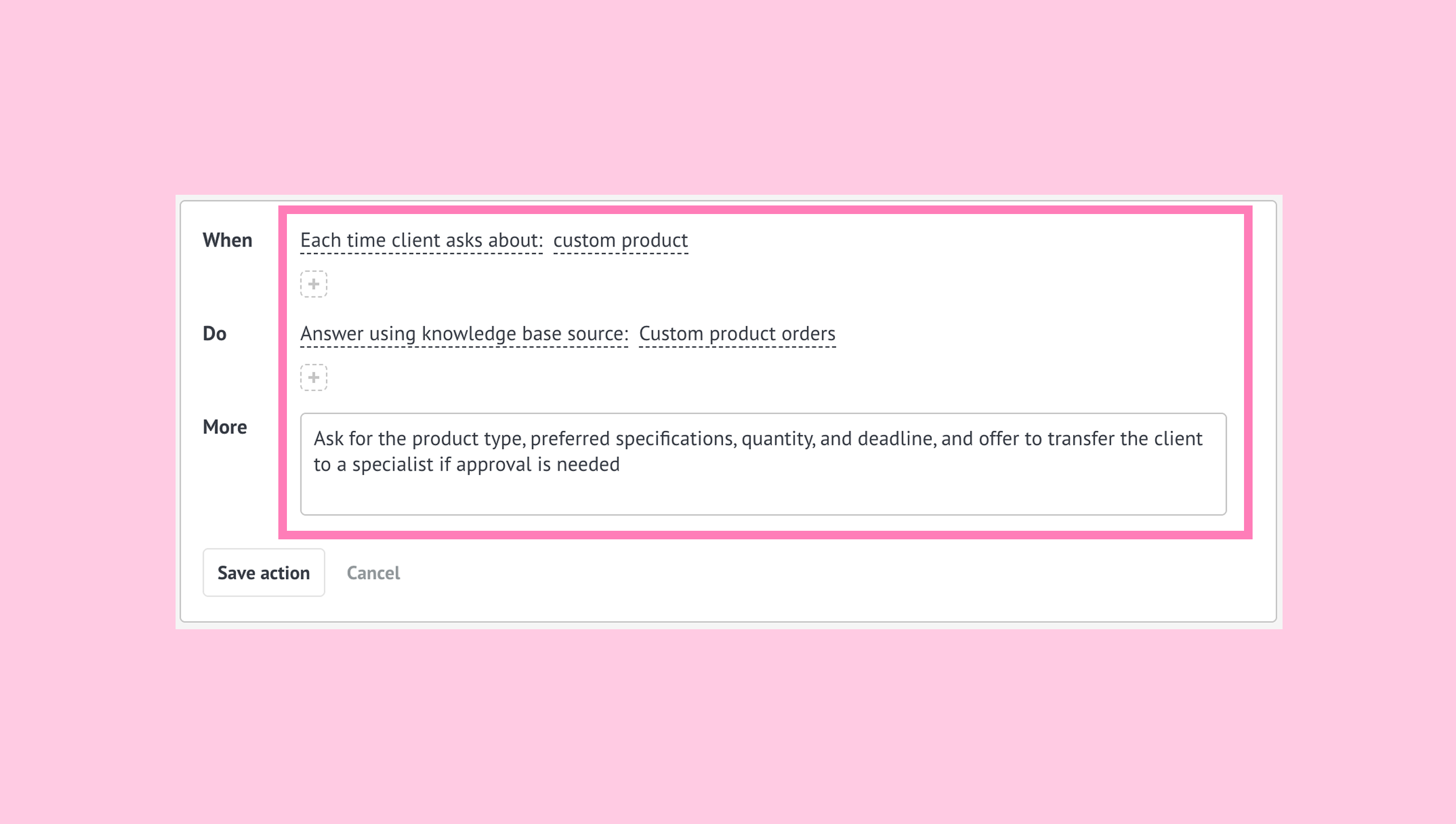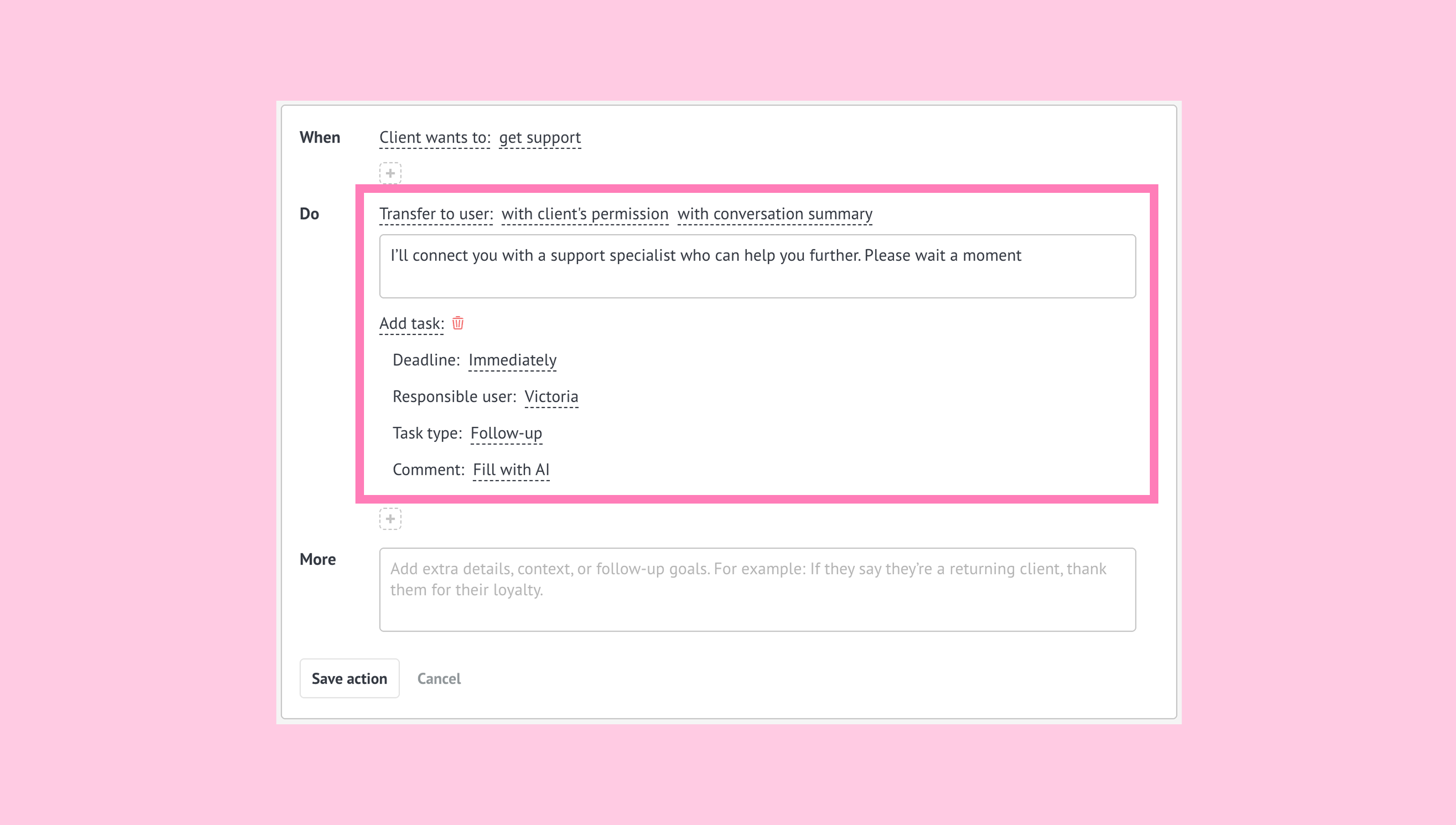 More (optional)- additional rules the AI agent should follow when a situation needs a bit more clarity or checks.