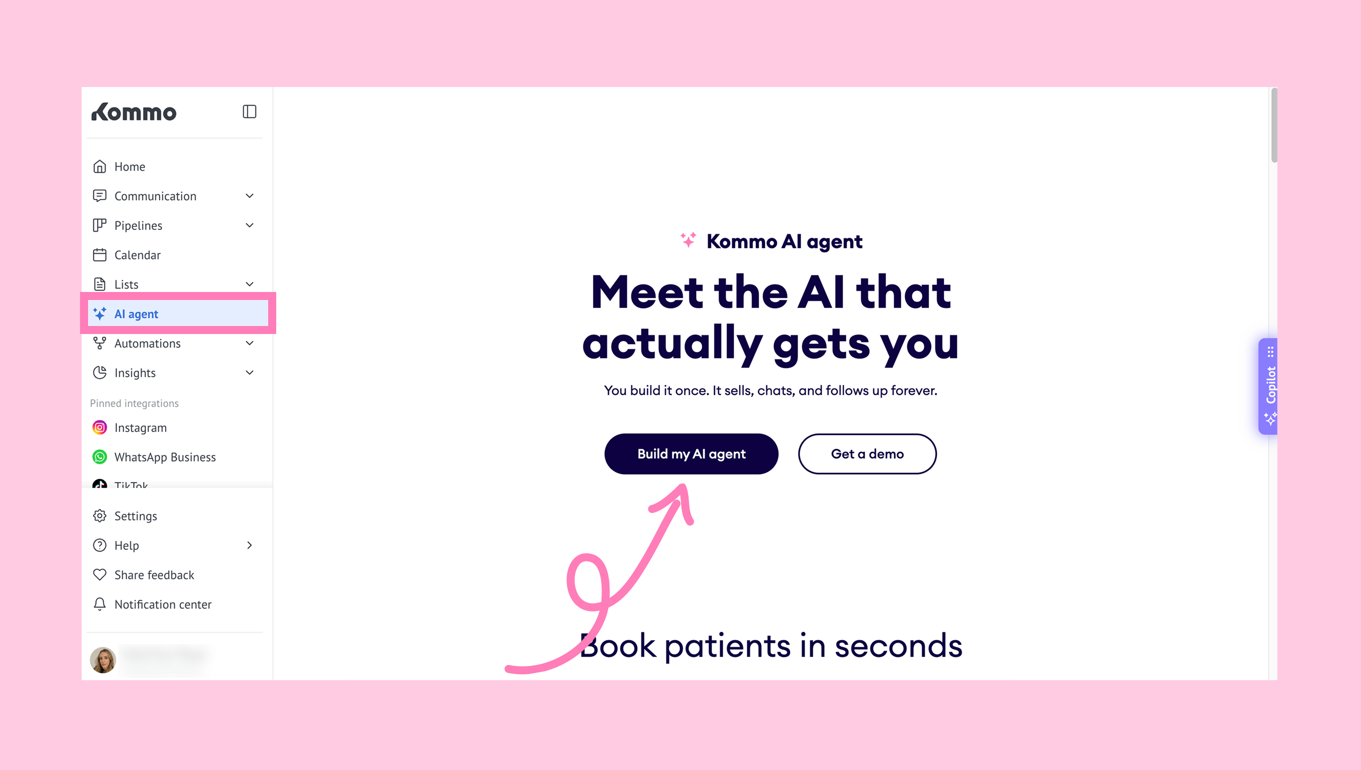 Note: If you’ve never created an AI agent before, click on Create my AI agent. Then, follow the steps in our guide to create one automatically.