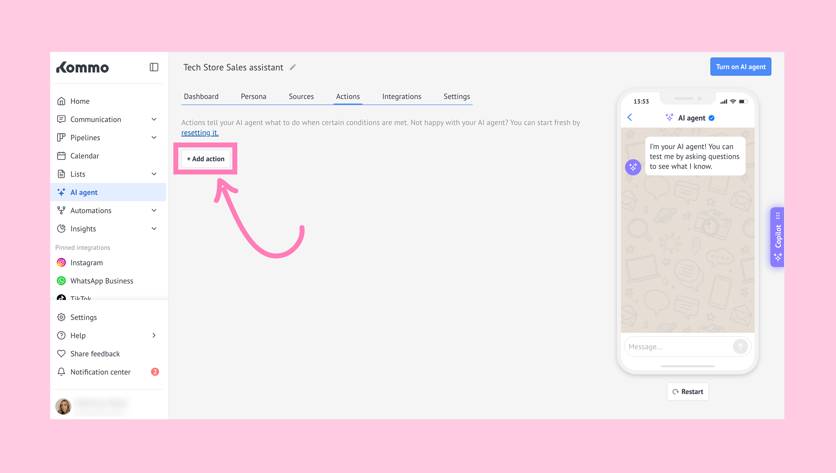 In this article, you’ll learn how to configure the AI agent with multiple actions to provide customer support, from the first reply to answering common questions and transferring conversations when needed.
