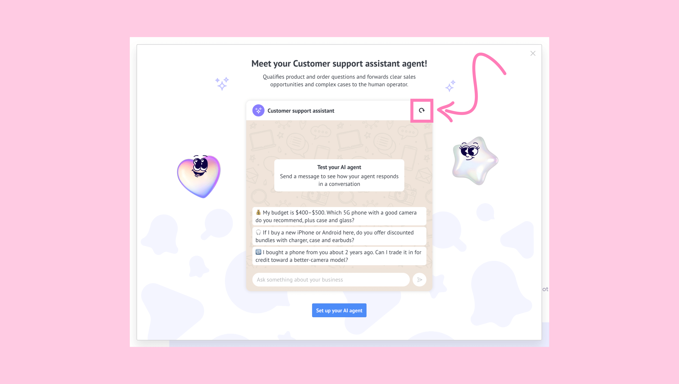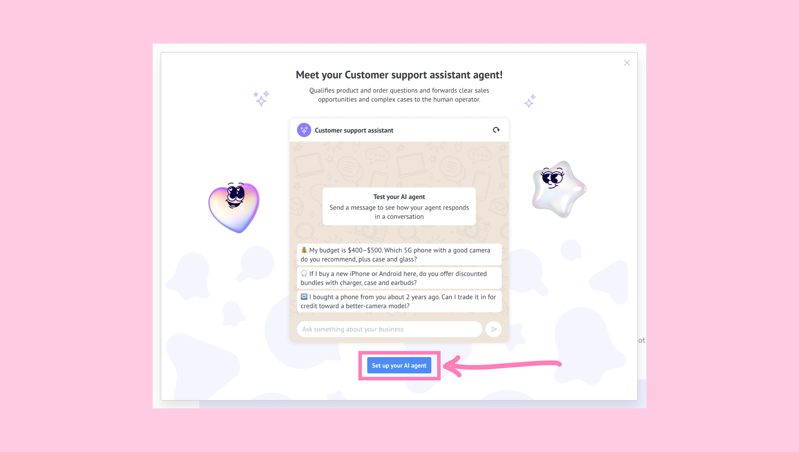 Then, click Set up your AI agent to continue.