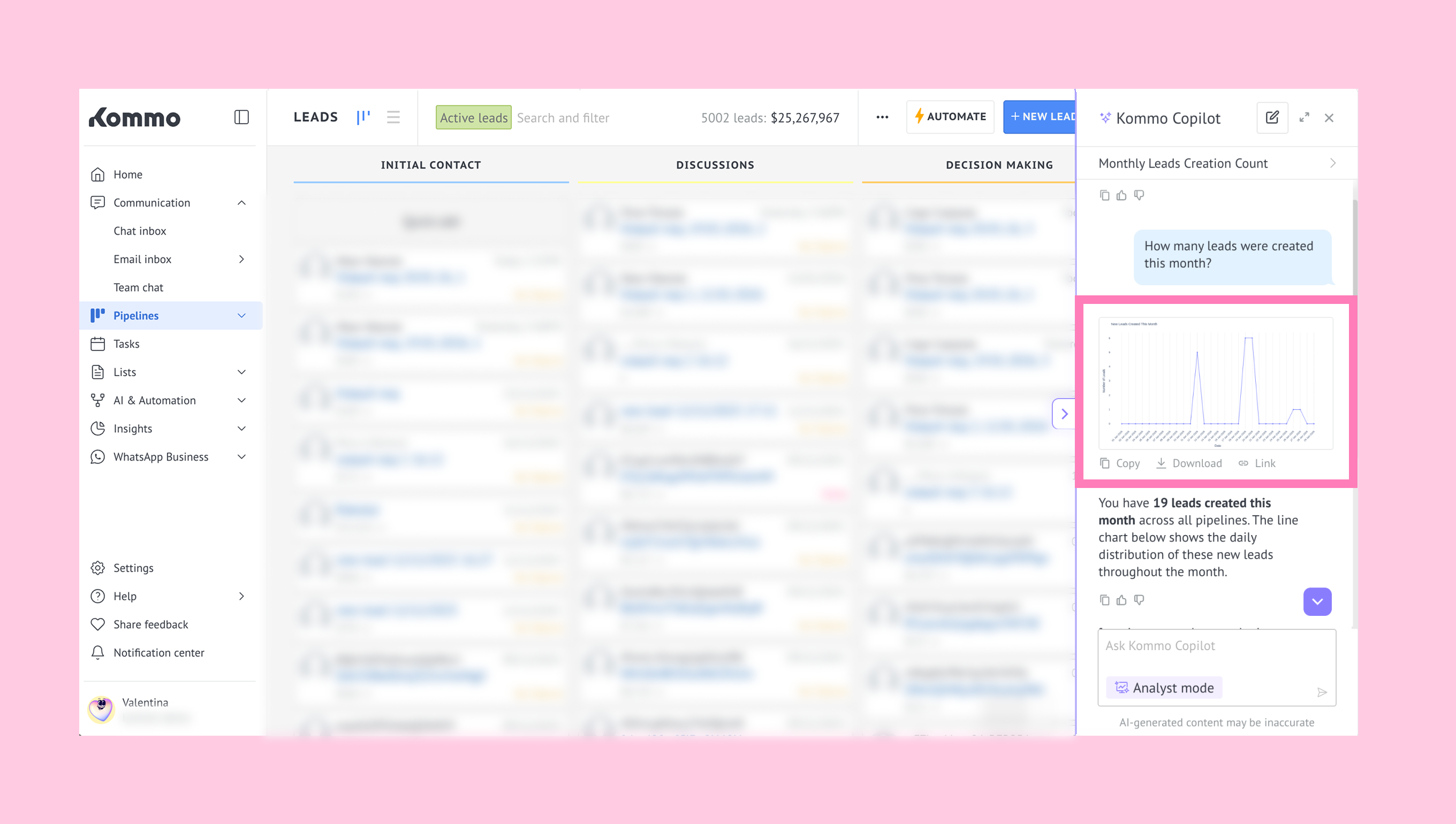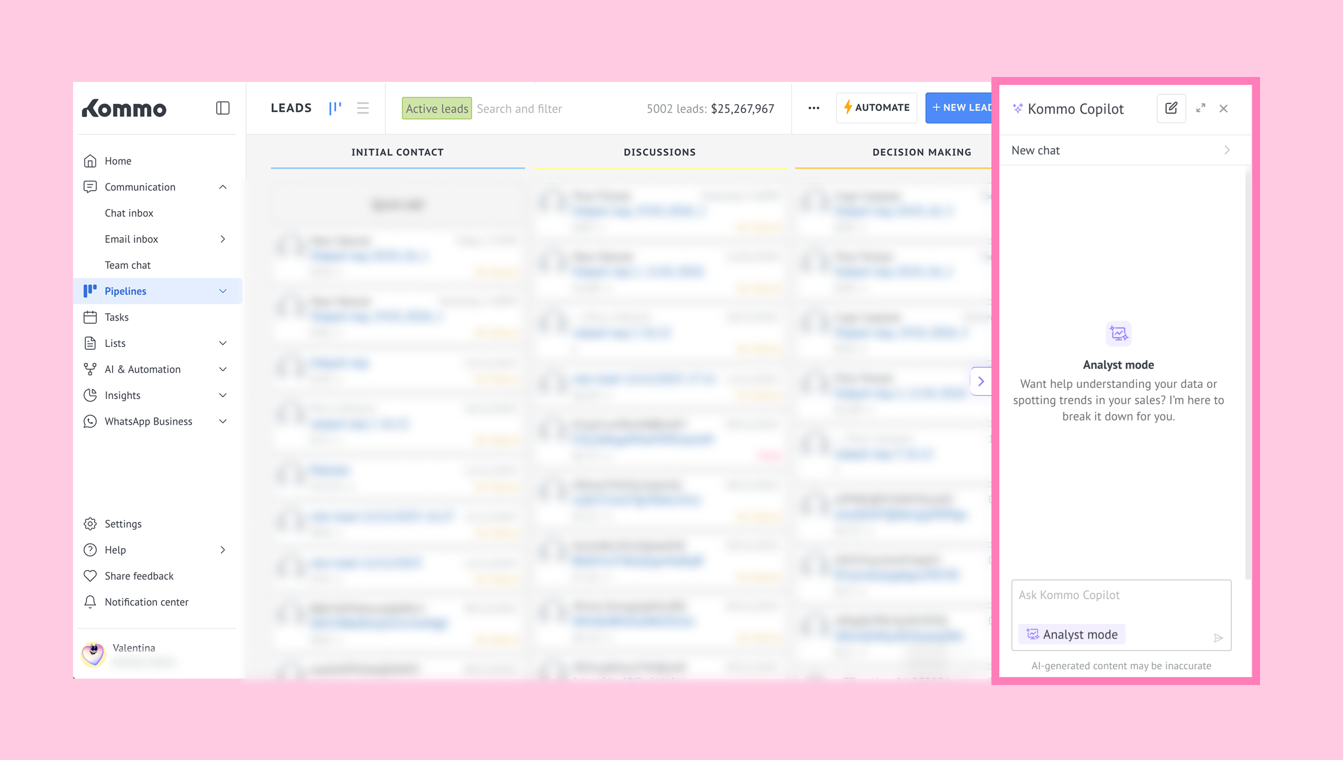 For more information about Copilot, see our Kommo Copilot guide.