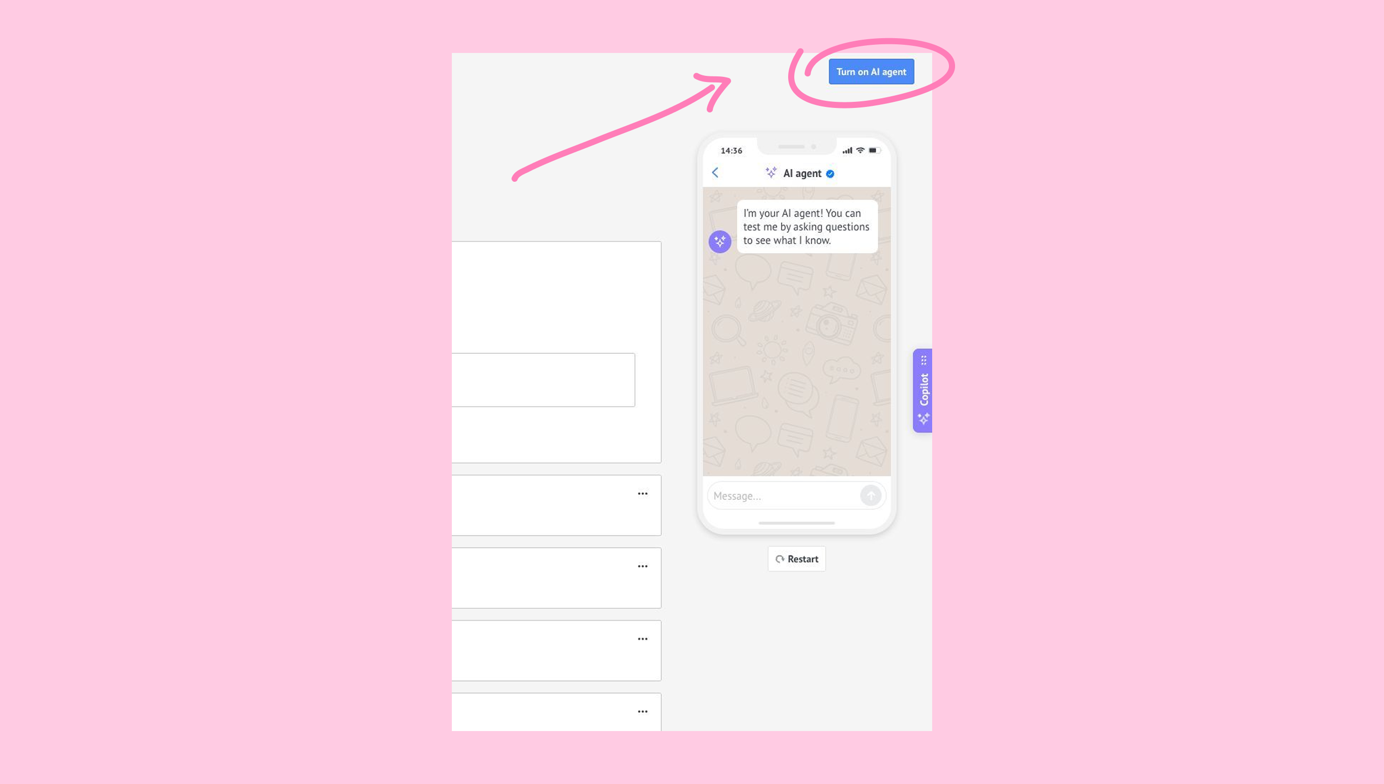 Click Turn on AI agent in the upper-right corner to activate the AI agent.