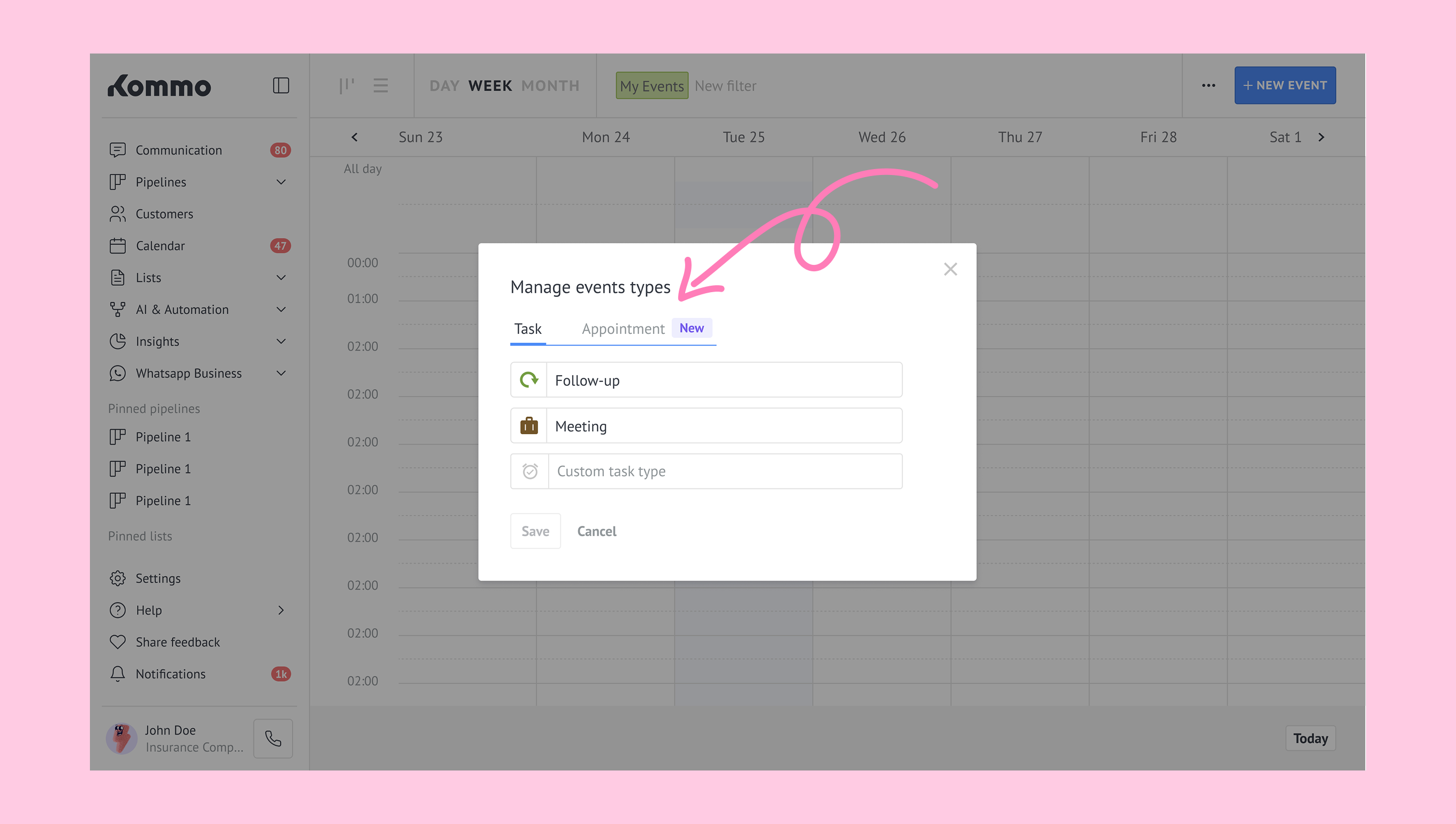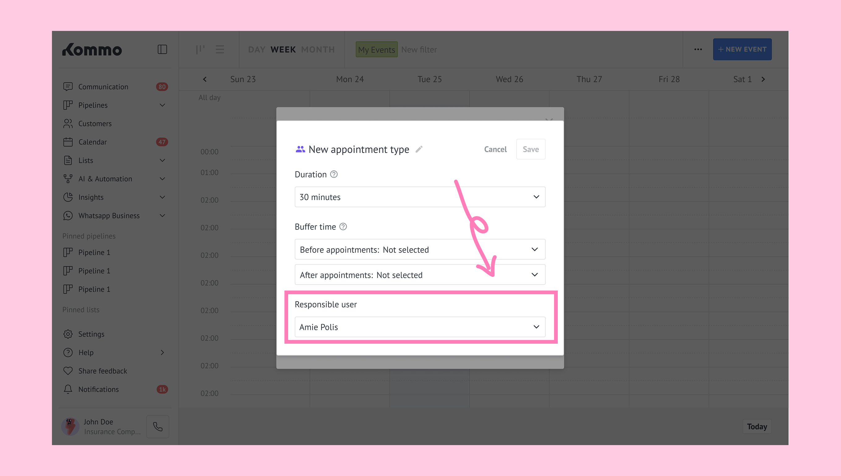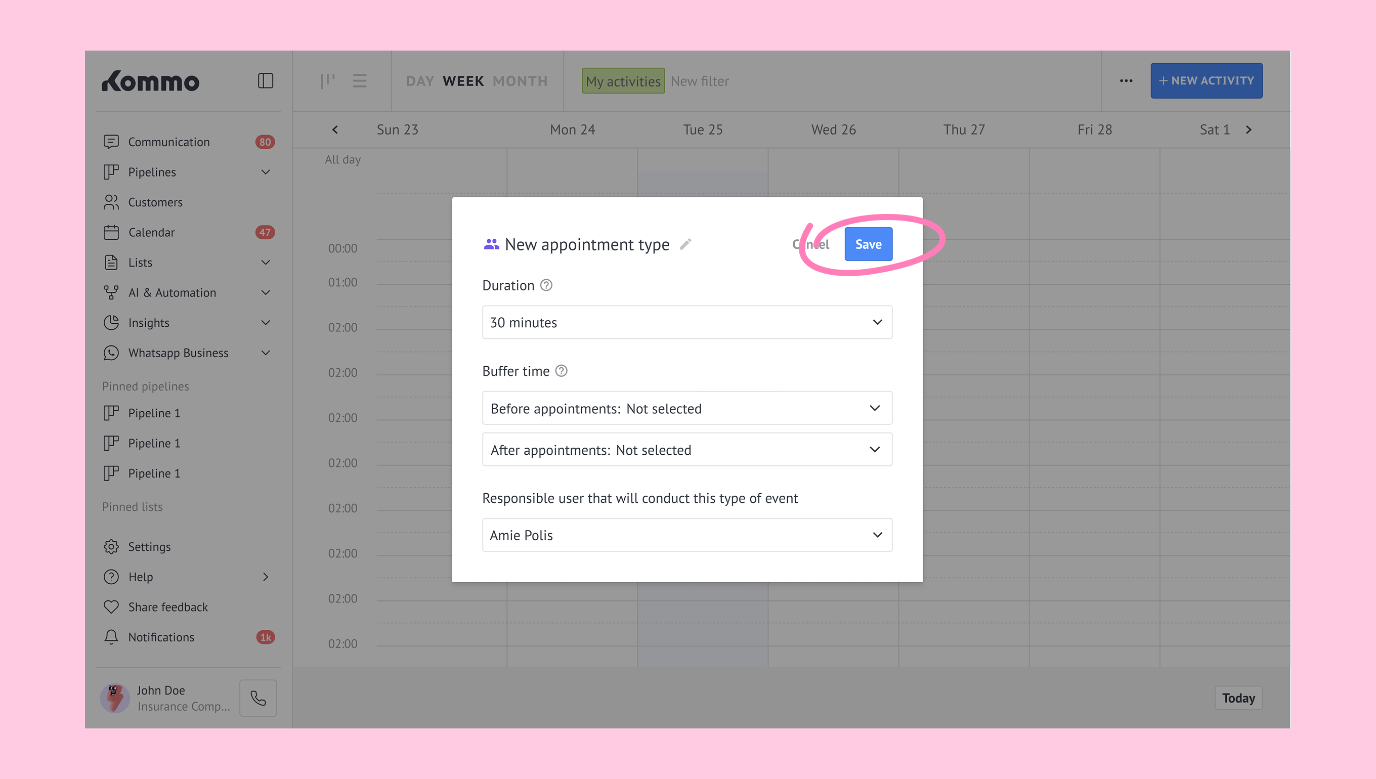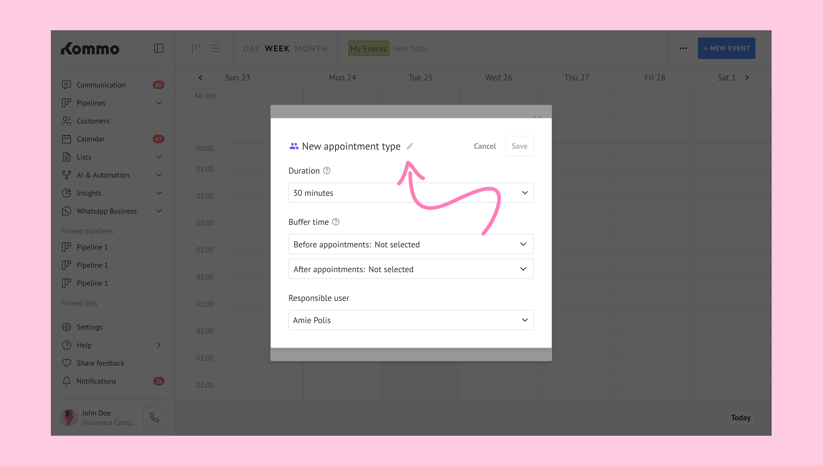 To start working with appointments in Kommo, you’ll need to set up:
