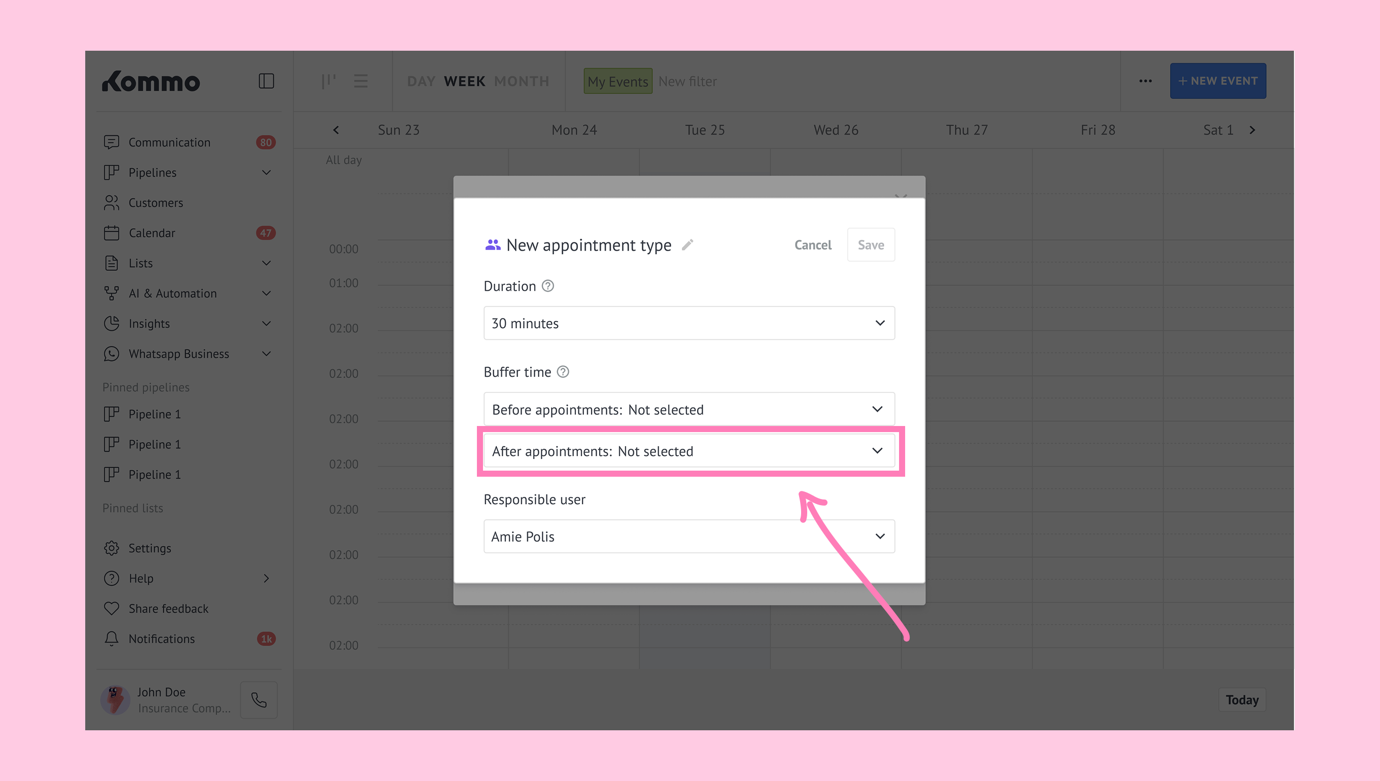 Click After appointments dropdown. → Select an option.
