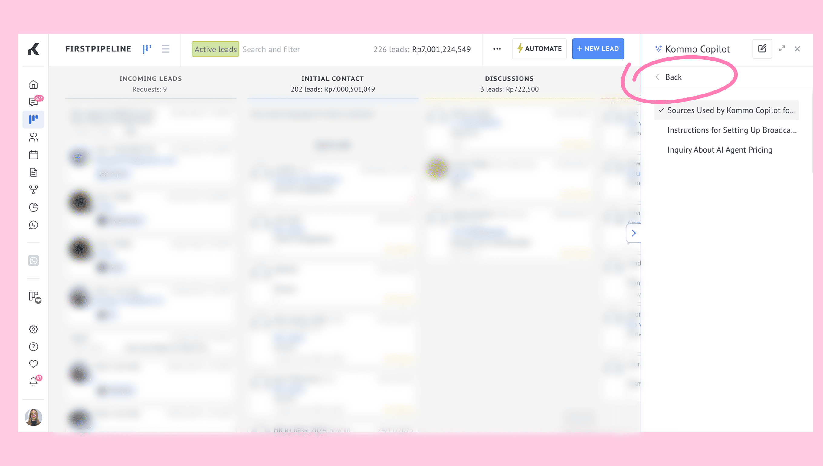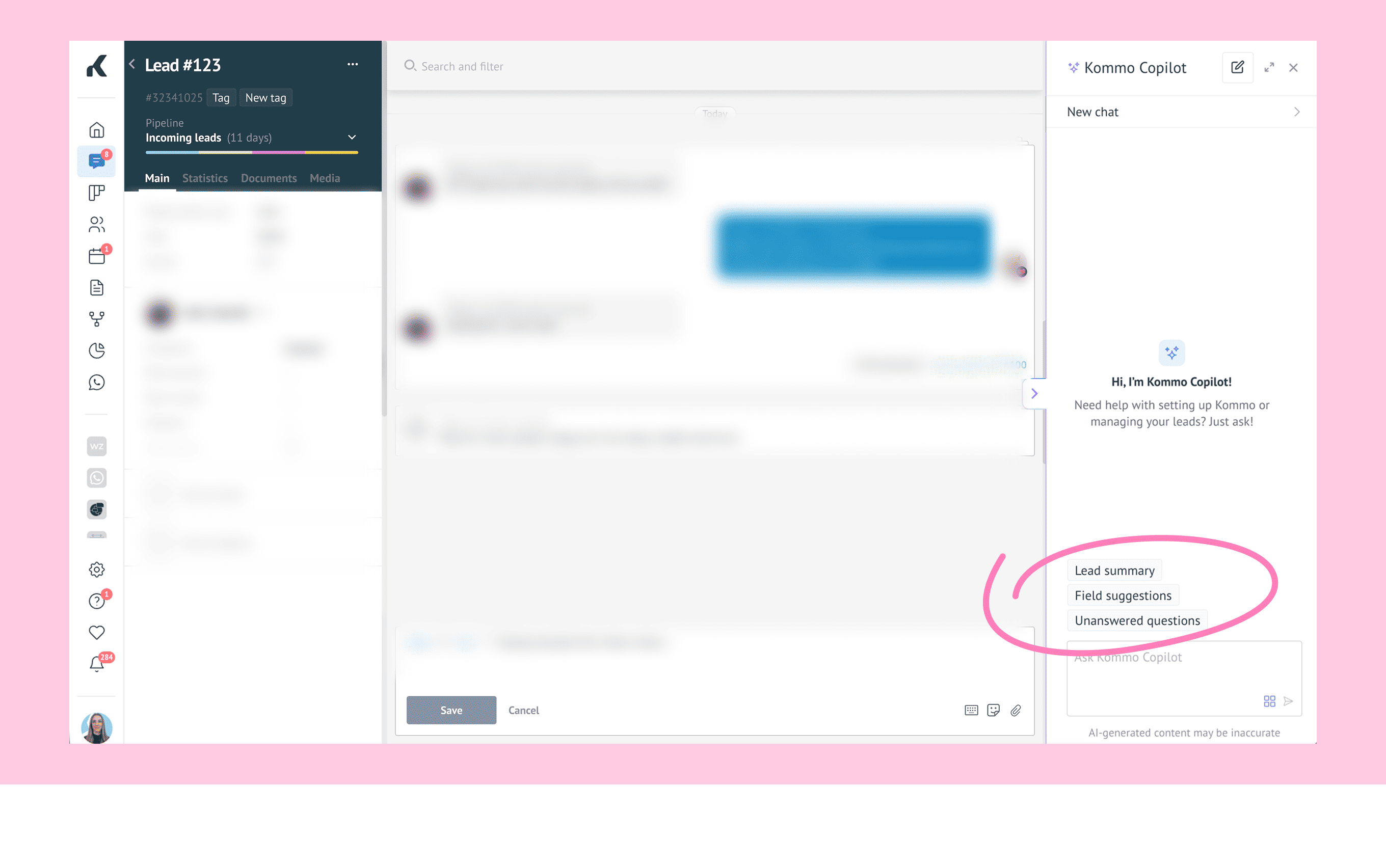 Review lead details with Kommo Copilot
